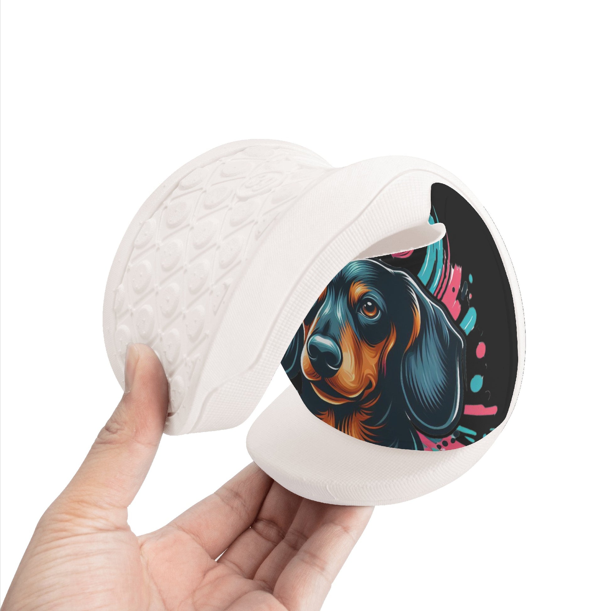 ¿Eres fanático del perro salchicha de cuerpo largo, valiente y adorable? ¿Quieres demostrar tu amor por esta raza de una forma divertida y a la moda? Si es así, ¡te encantarán estas sandalias con estampado personalizado!