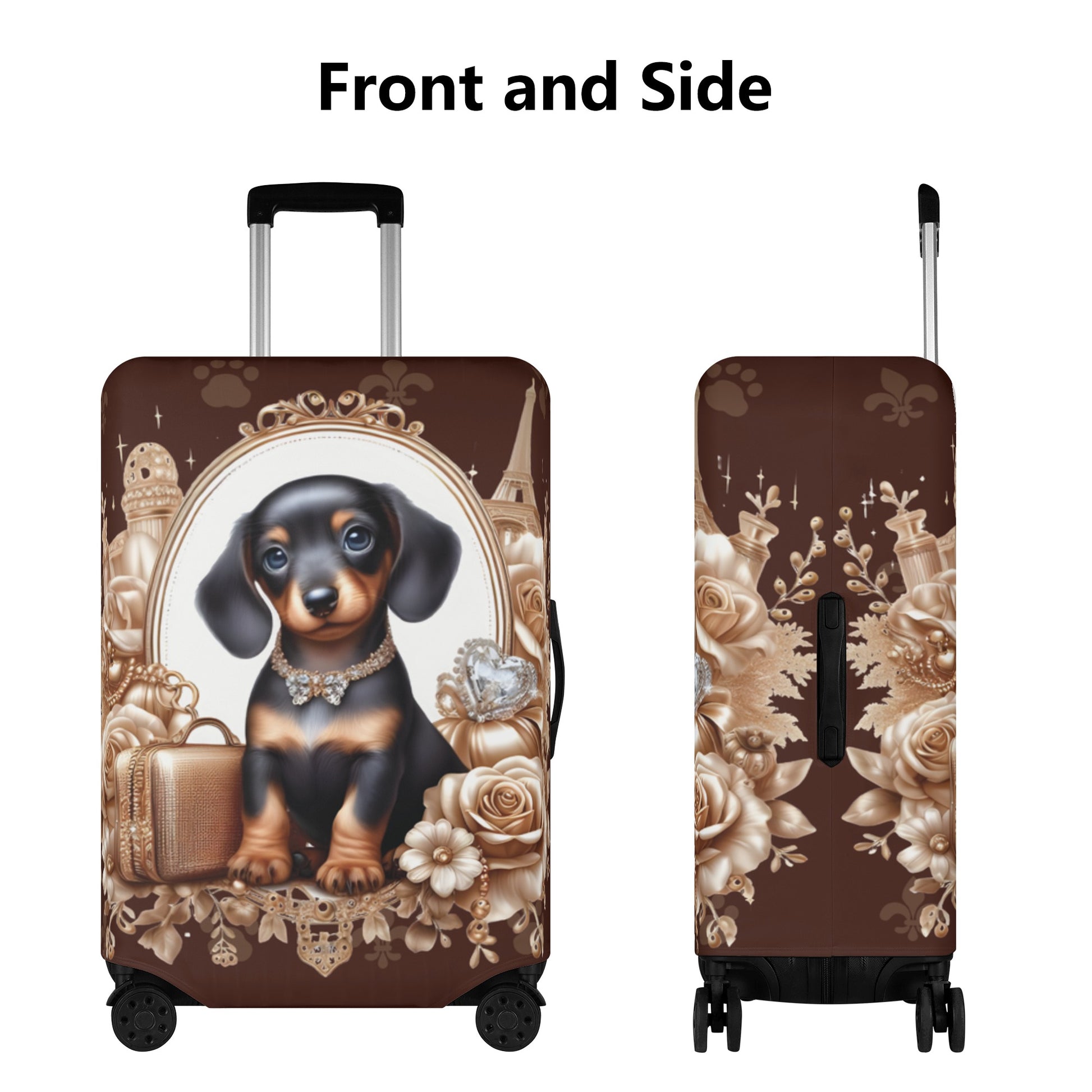 Abrace los viajes con nuestra funda para equipaje con temática de Dachshund . Fabricada con una mezcla duradera de poliéster y lona, protege contra el desgaste de los viajes y las inclemencias del tiempo. Disponible en tallas S a XL, se adapta a cada viaje.