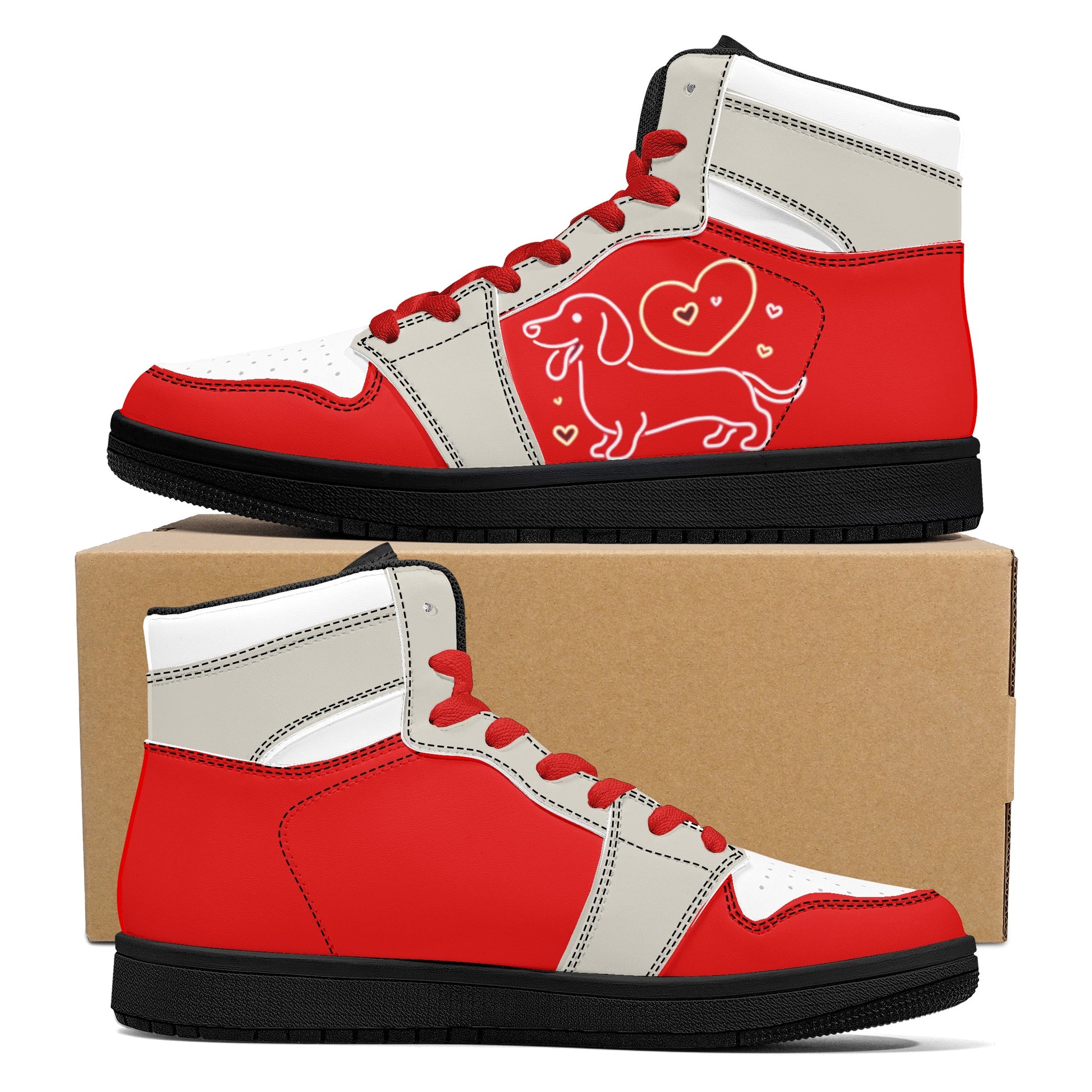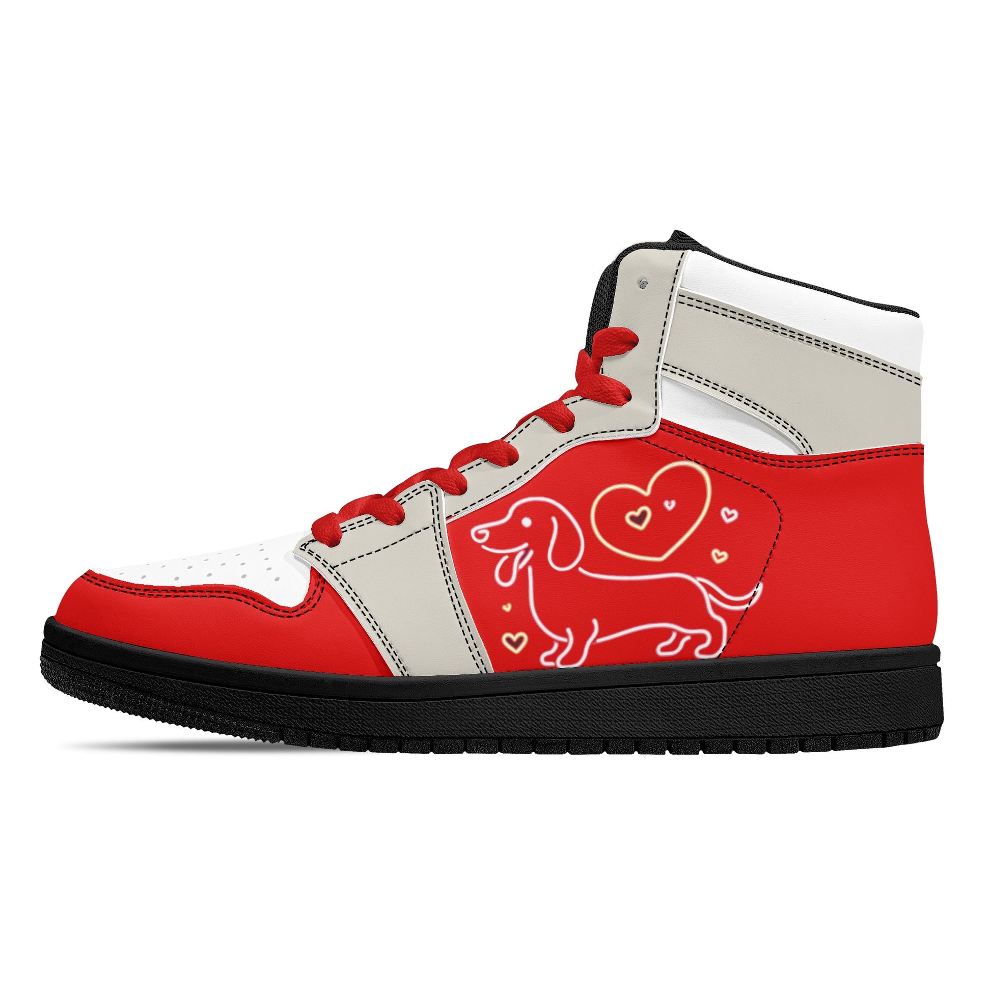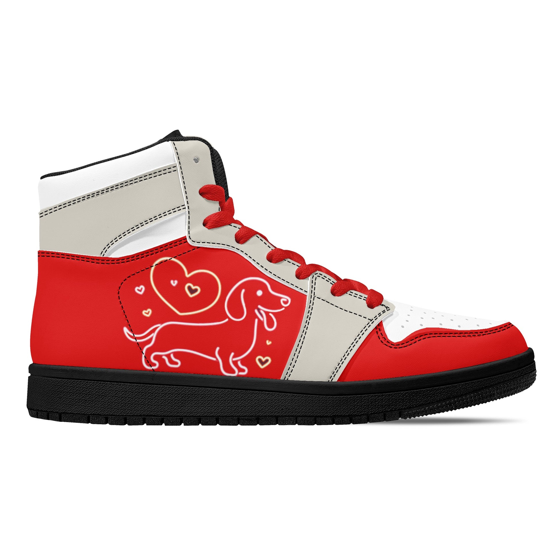 Si es así, te encantarán estos zapatos personalizados con estampado integral que presentan lindas cabezas de perro salchicha en varios colores y patrones.