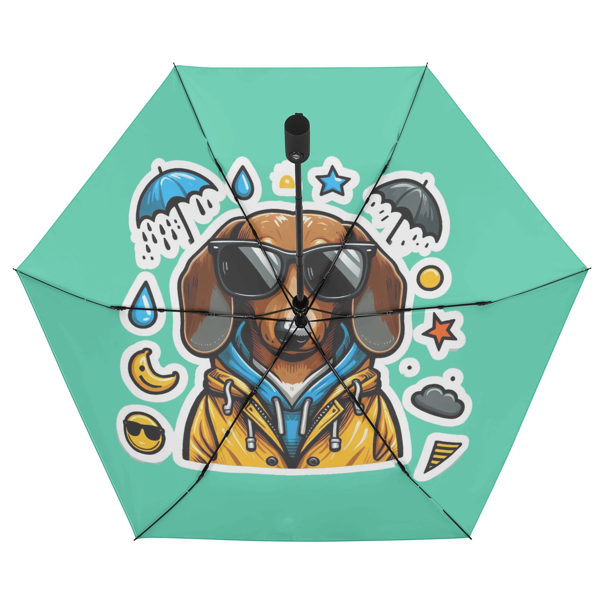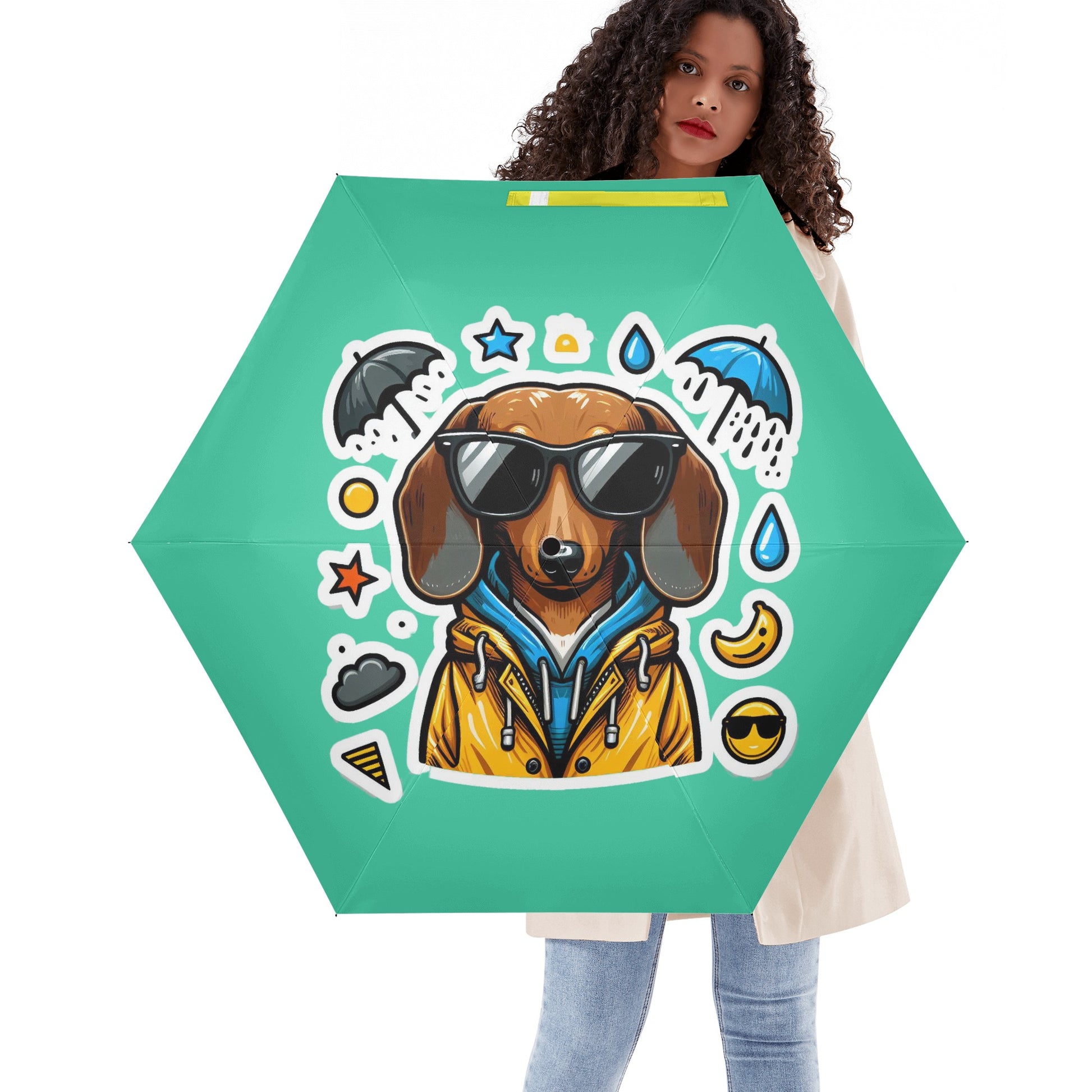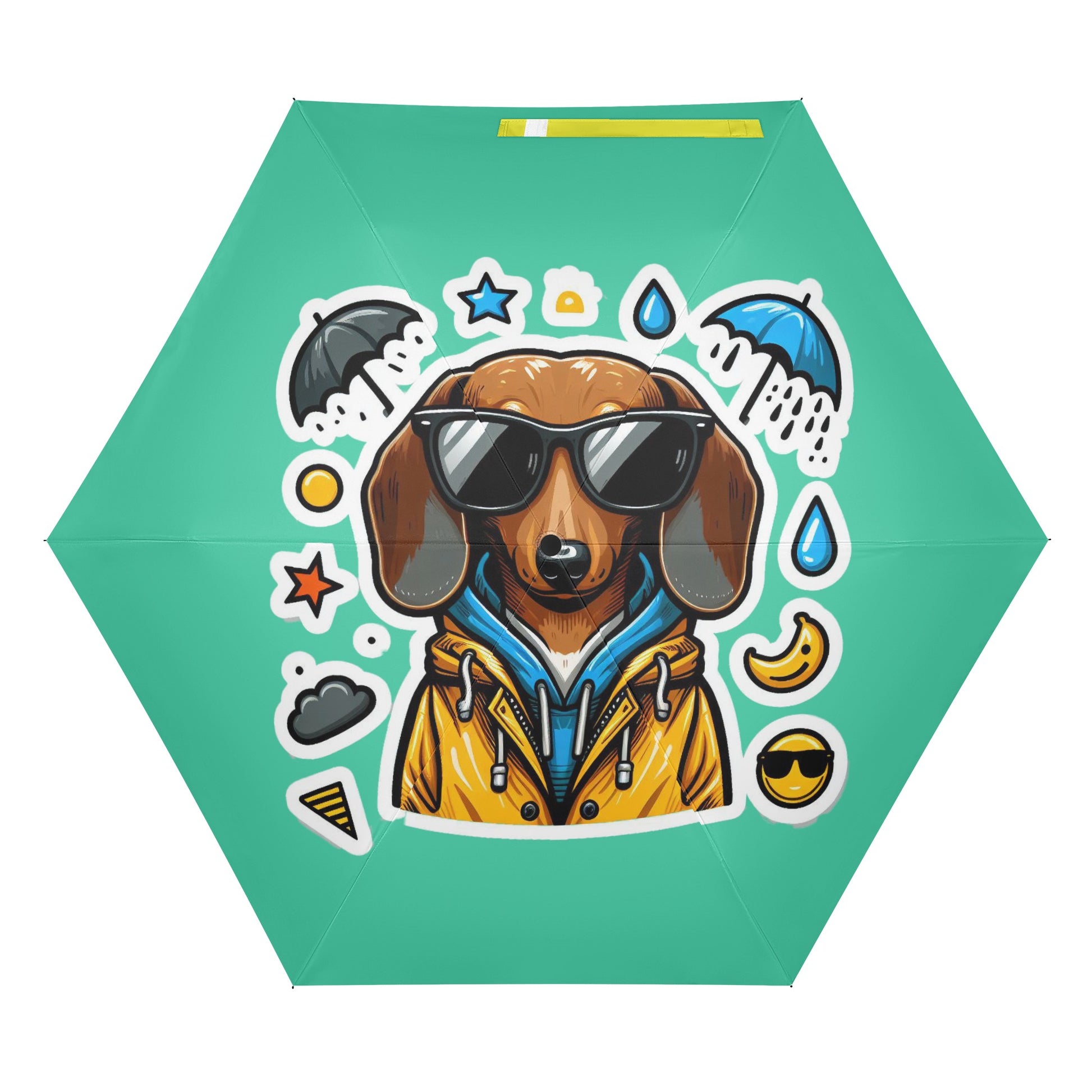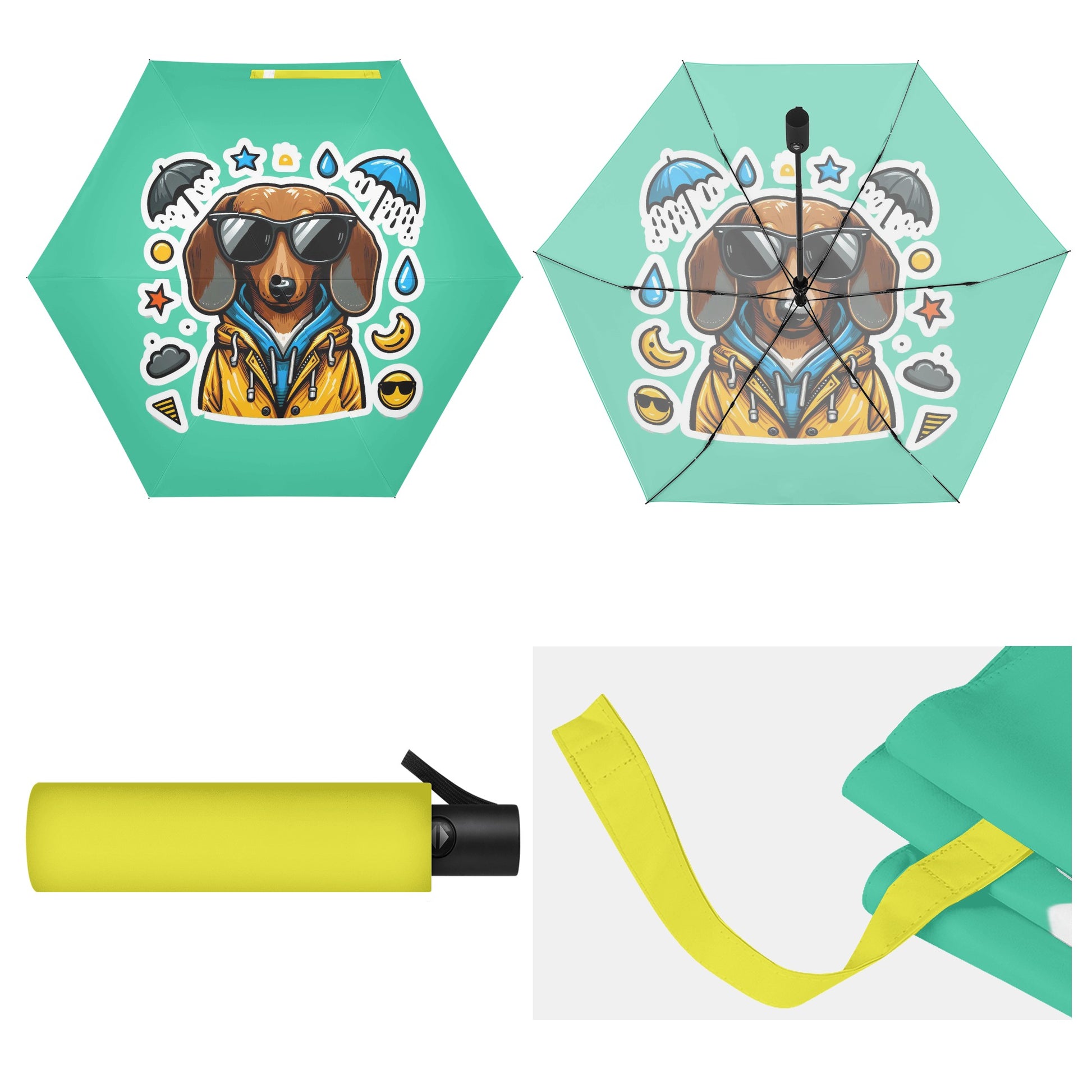 El paraguas se compone de 6 piezas, cada una con un bonito estampado de perro salchicha. También puedes personalizar el cinturón y la funda para que coincidan con tu estilo y preferencia. El paraguas tiene un mecanismo de apertura y cierre automático y un mango de agarre cómodo. Puedes abrirlo y cerrarlo con una mano y disfrutar de una experiencia cómoda y fluida.