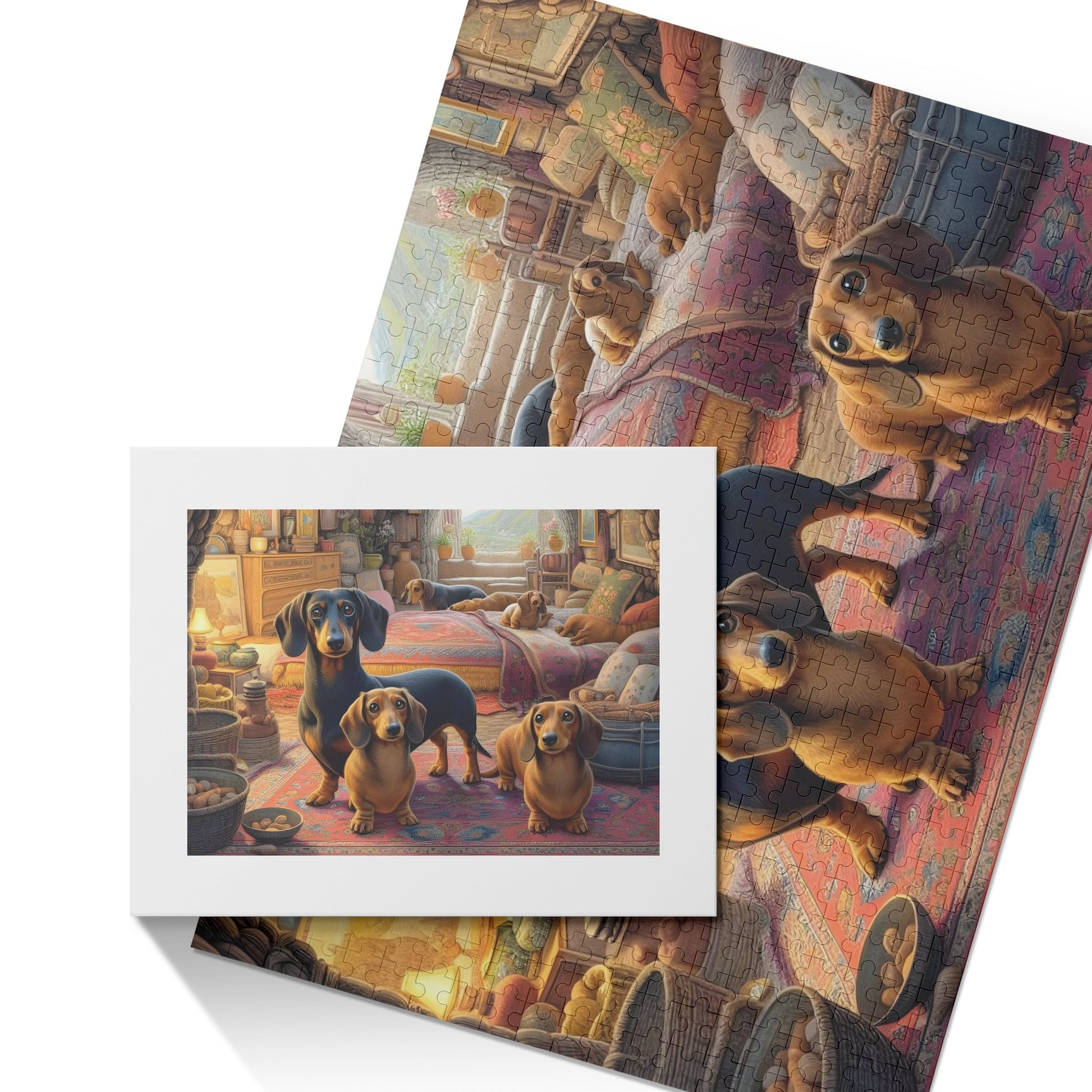 Este rompecabezas no es sólo un pasatiempo divertido; es un desafío esperando que lo conquistes. Ya sea que sea un adulto que busca una actividad relajante para relajarse o un niño al que le gustan los rompecabezas, este rompecabezas con temática de Dachshund promete horas de alegría y satisfacción mientras ensambla cada pieza.