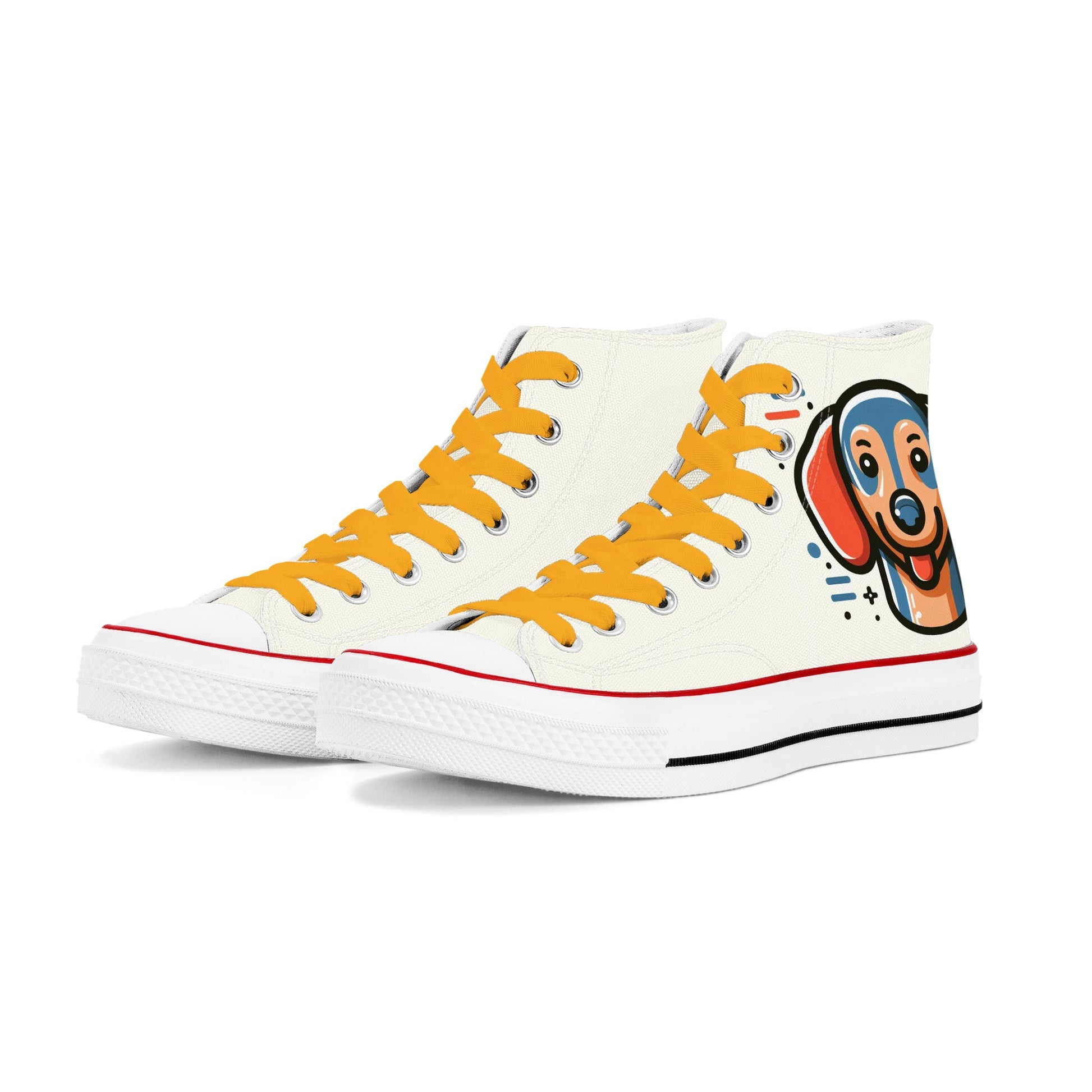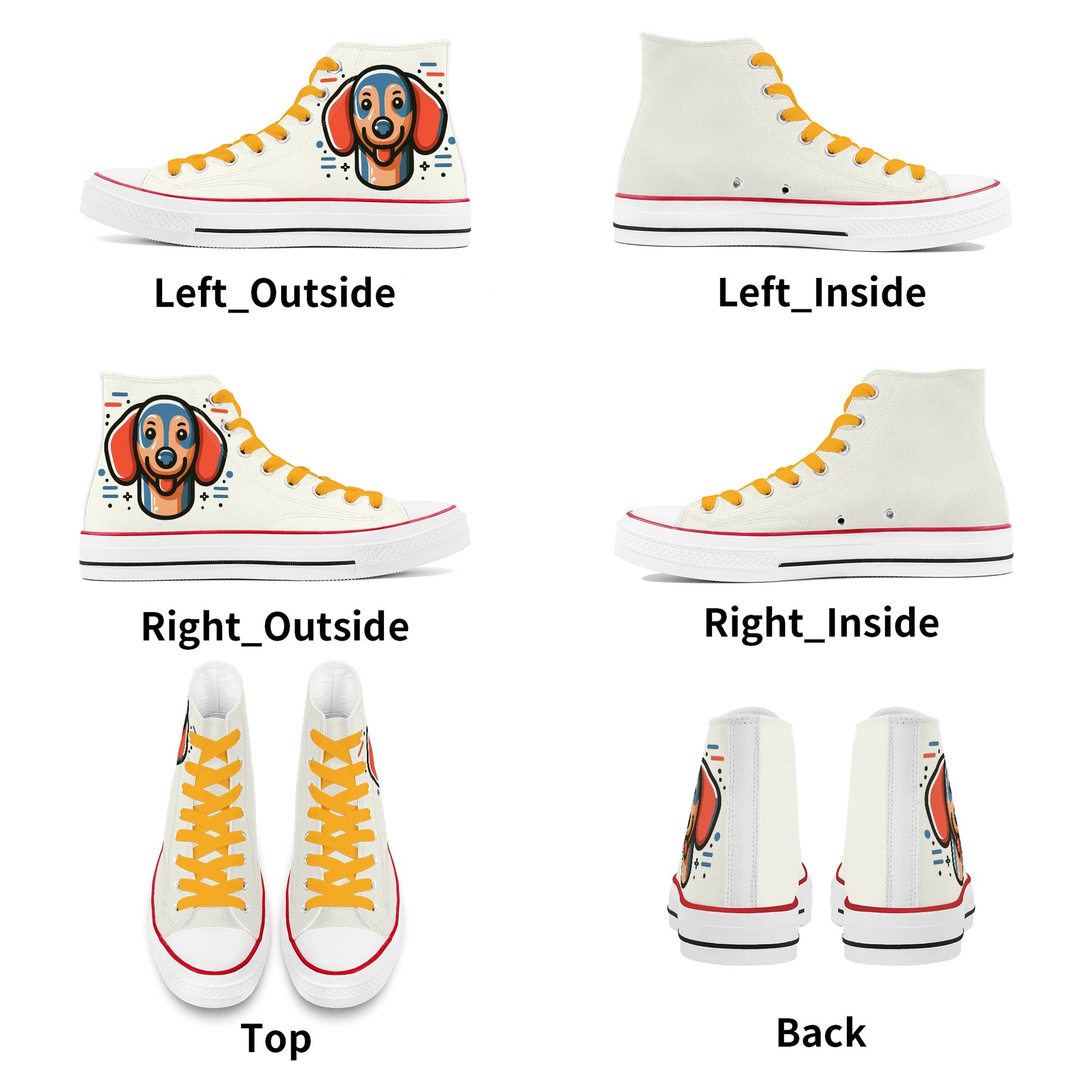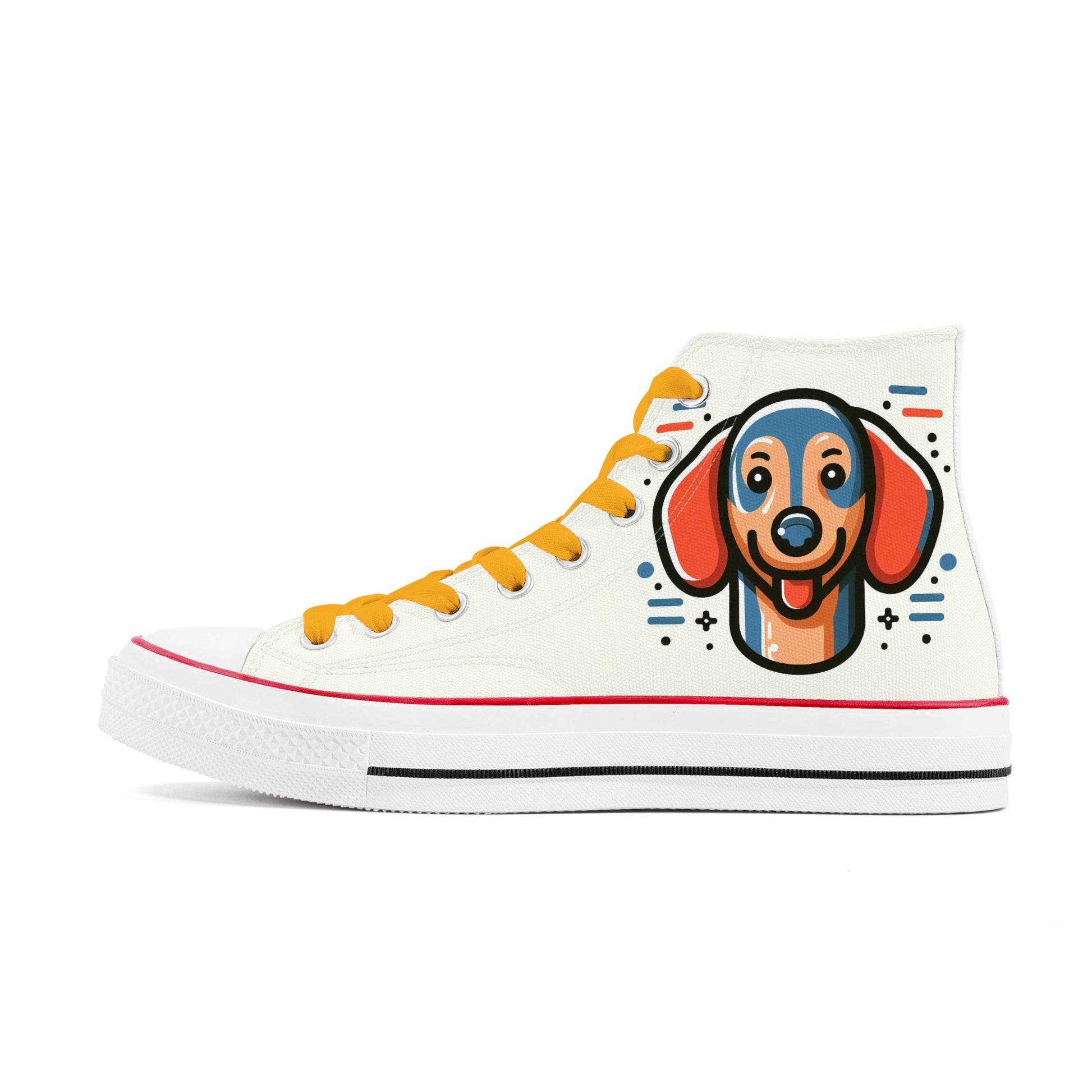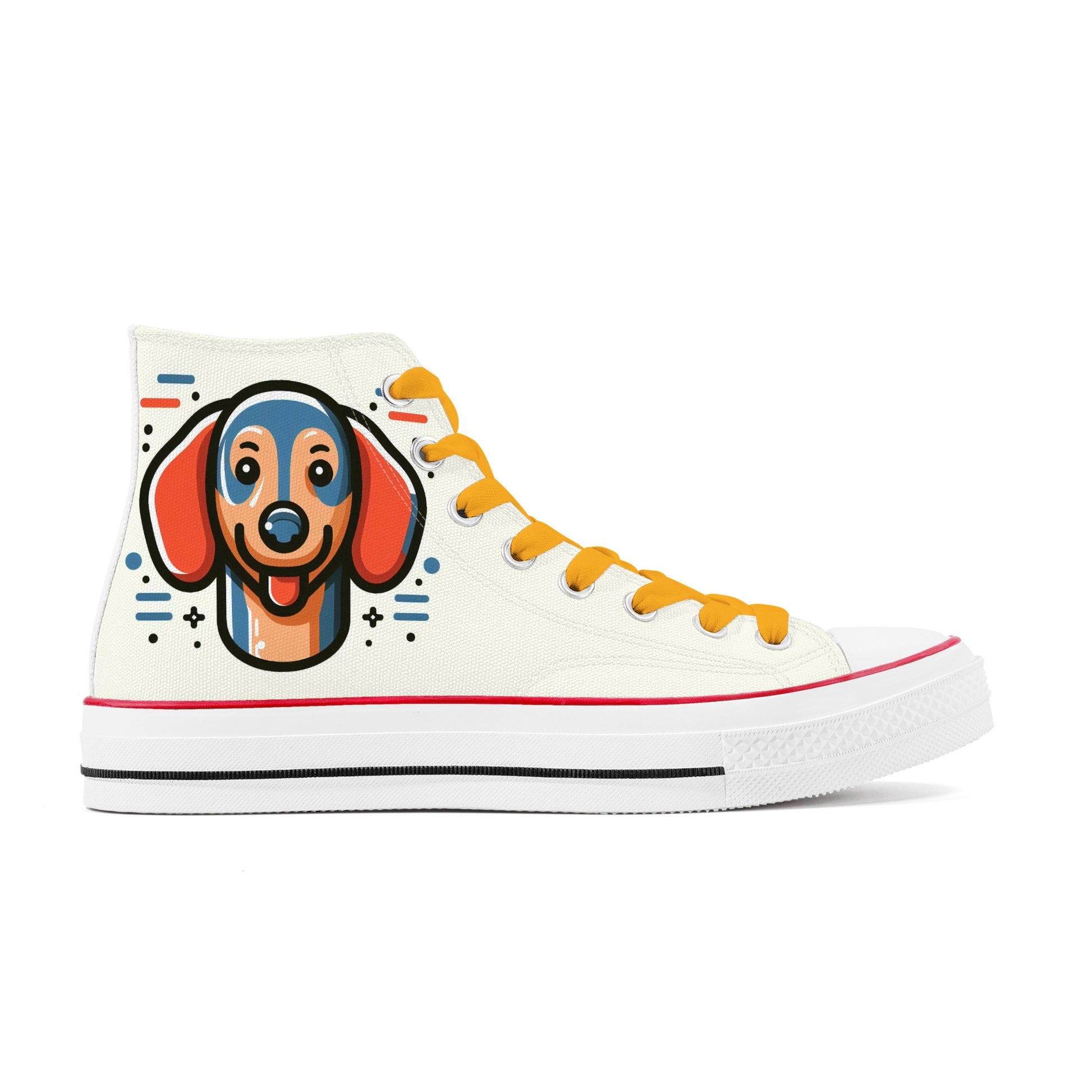 Si te encantan los perros salchicha, los perros encantadores y leales con cuerpos largos y patas cortas, te encantarán estos zapatos personalizados con estampado integral que presentan un divertido diseño de perro salchicha.