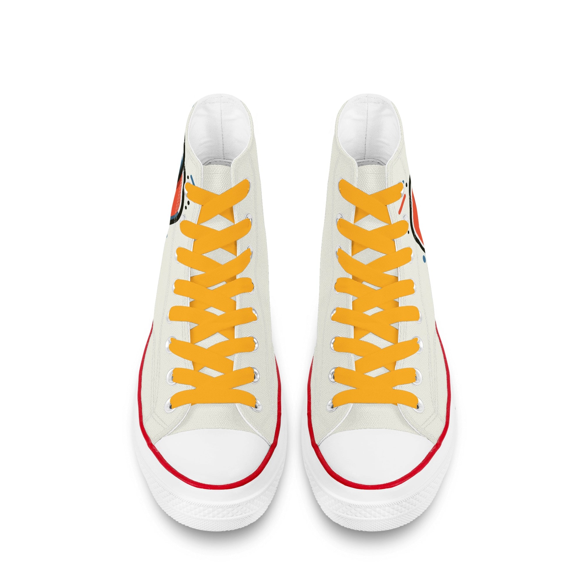Estos zapatos no sólo están de moda, sino también cómodos y duraderos. Tienen una construcción blanca de caña alta con cierre de cordones con 8 ojales para un ajuste cómodo, una parte superior de lona para un ajuste cómodo y transpirable, y una suela de goma y una plantilla de EVA extraíble para una excepcional resistencia al deslizamiento, mejor agarre y soporte sostenido.