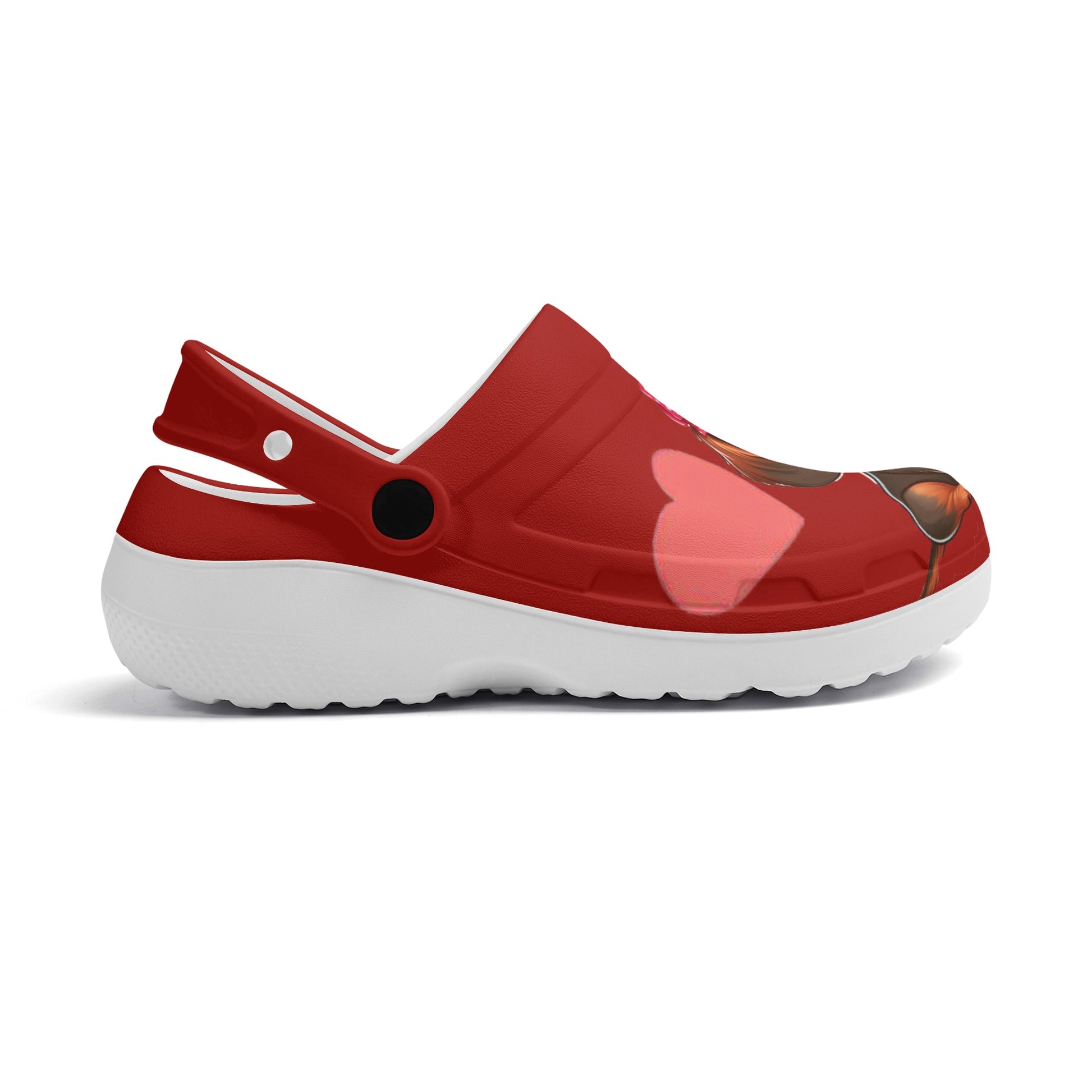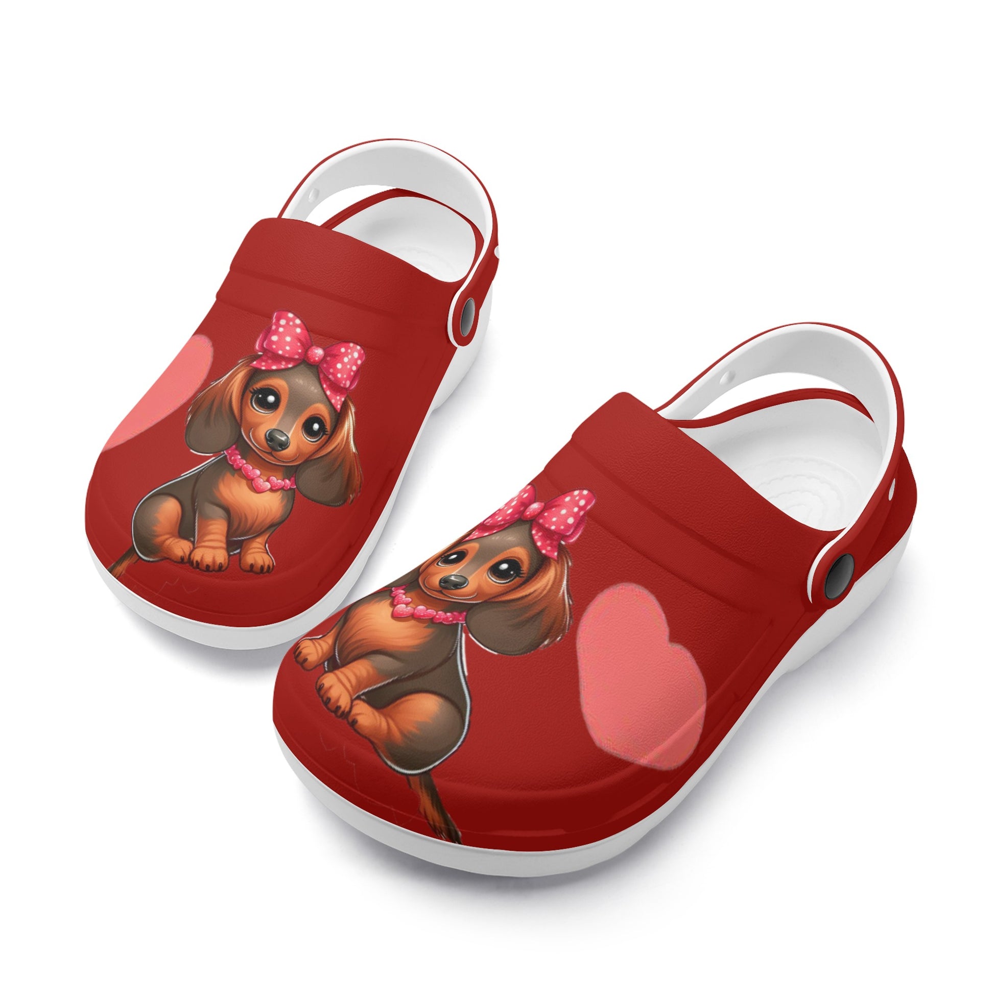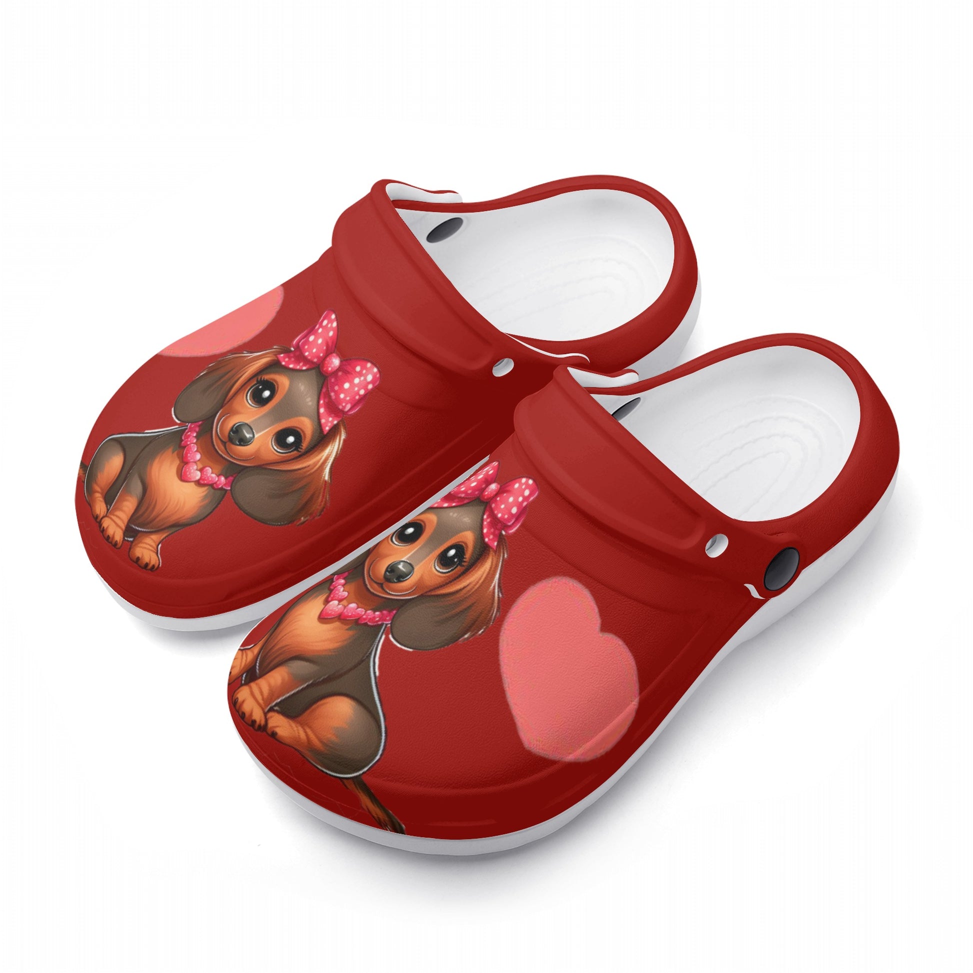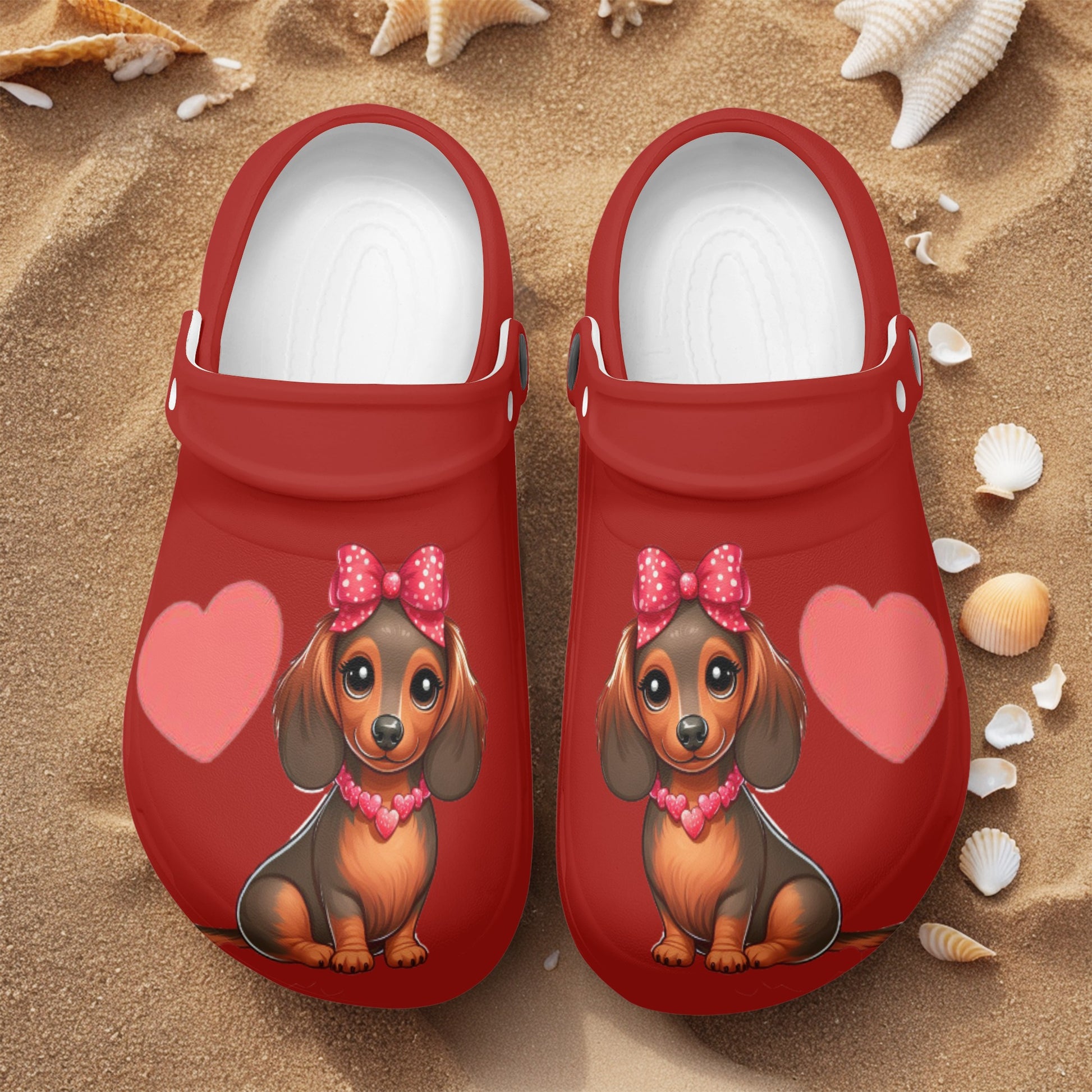 Si estás buscando un par de zuecos cómodos y elegantes que muestren tu amor por los perros salchicha, ¡te encantarán estos zuecos impresos personalizados con varias imágenes de perros salchicha!
