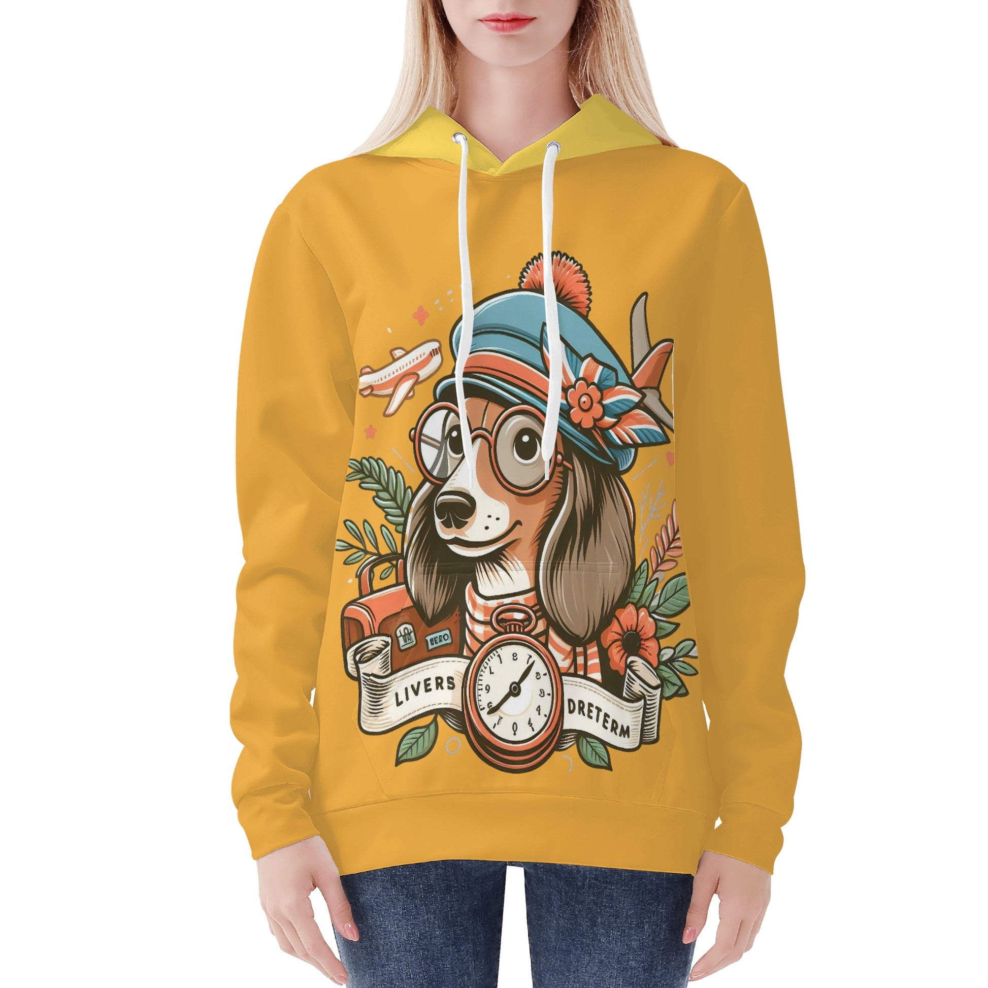 Si te encantan los perros salchicha, te encantará esta acogedora y elegante sudadera con capucha para mujer. Esta sudadera con capucha está hecha de un material de poliéster que es suave, cómodo y cálido para el uso diario. Está cortado y cosido pieza a pieza para adaptarse perfectamente a tu cuerpo. Tiene una capucha con cordones y un bolsillo canguro para mayor calidez y comodidad.