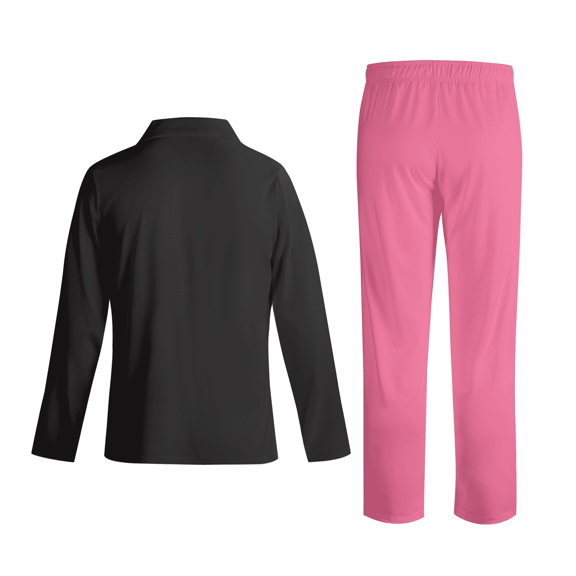 - Este conjunto de pijama está hecho de tela de poliéster premium de alta calidad, que es suave, transpirable y duradera. La parte superior está diseñada para un ajuste relajado y cómodo, permitiendo un fácil movimiento por todo el cuerpo. La parte inferior está confeccionada para brindar un ajuste suave y cómodo en el área de la cadera y el muslo. La camisa de manga larga y los pantalones largos ofrecen una cobertura y calidez óptimas, lo que hace que este conjunto de pijama sea ideal para las noches frías.
