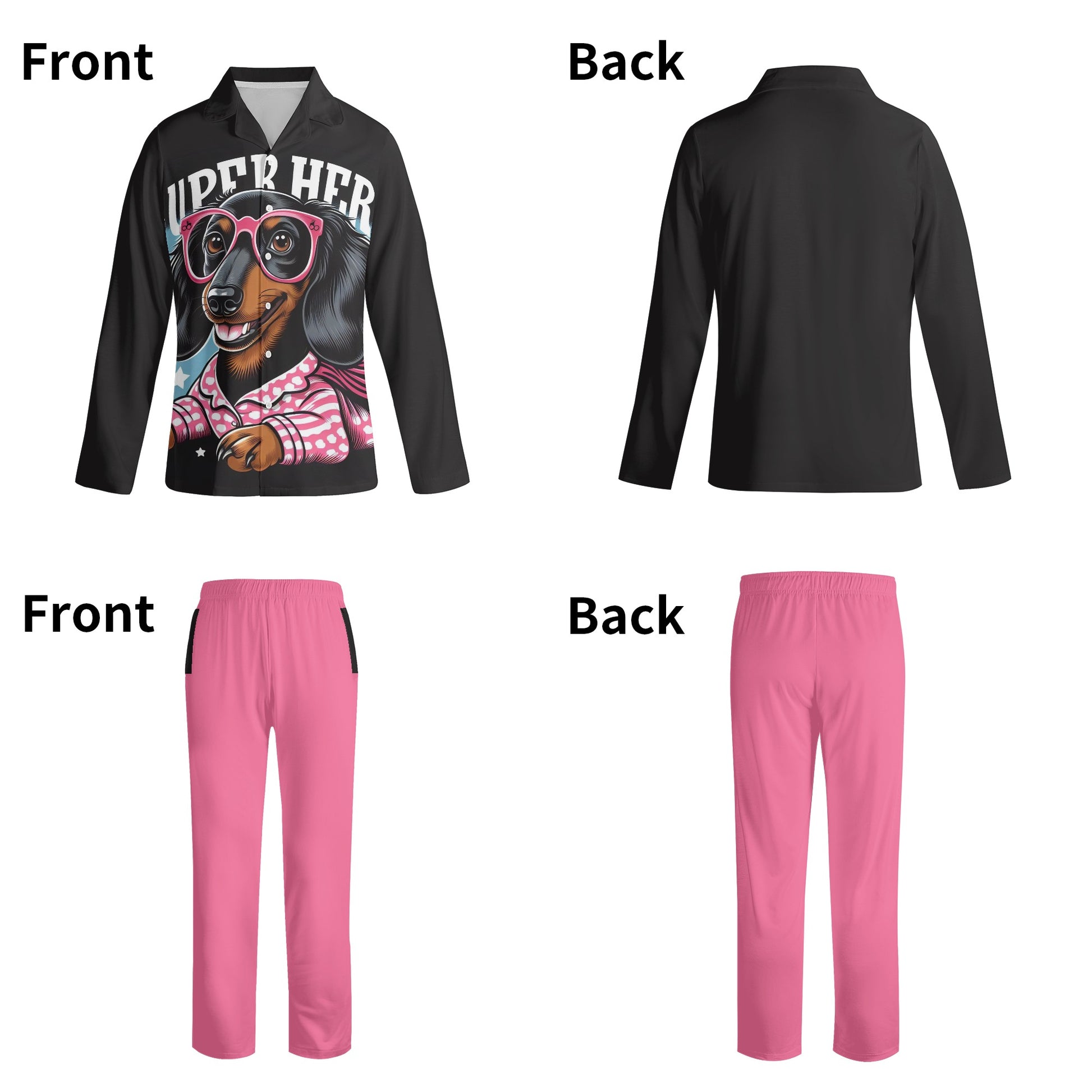 - ¿Amas a los perros salchicha tanto como a nosotros? Si es así, te encantará este conjunto de pijama acogedor y elegante que presenta un lindo y colorido patrón de perro salchicha. Ya sea que estés acurrucándote con tu amigo peludo o relajándote solo, este conjunto de pijama te mantendrá abrigado y cómodo durante toda la noche.