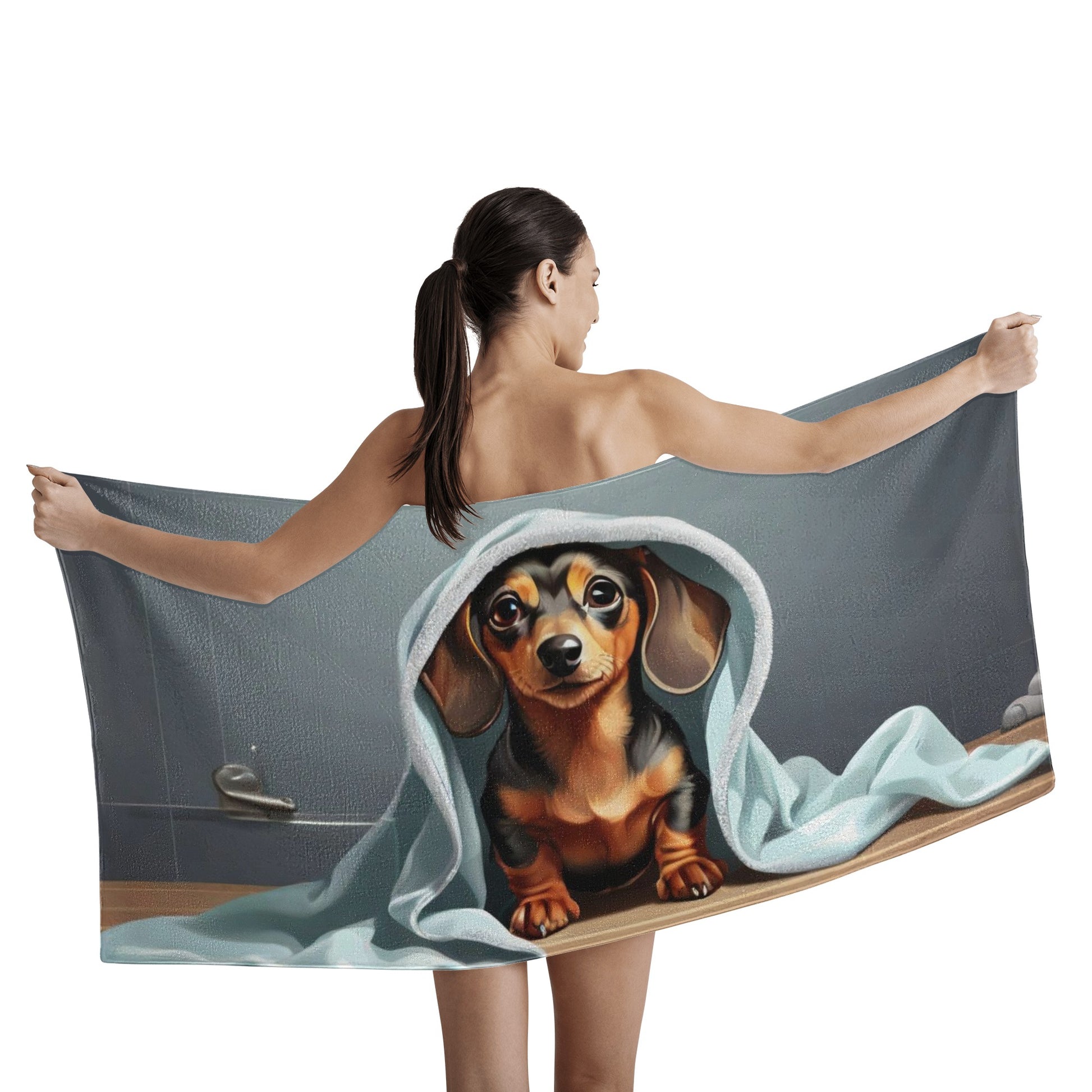 - ¿Amas a los perros salchicha tanto como a nosotros? Si es así, te encantará esta colorida y acogedora toalla de baño con un bonito y alegre estampado de perro salchicha. Ya sea que estés duchándote, yendo a la playa o yendo al gimnasio, esta toalla de baño alegrará tu día y te hará sentir mimado.