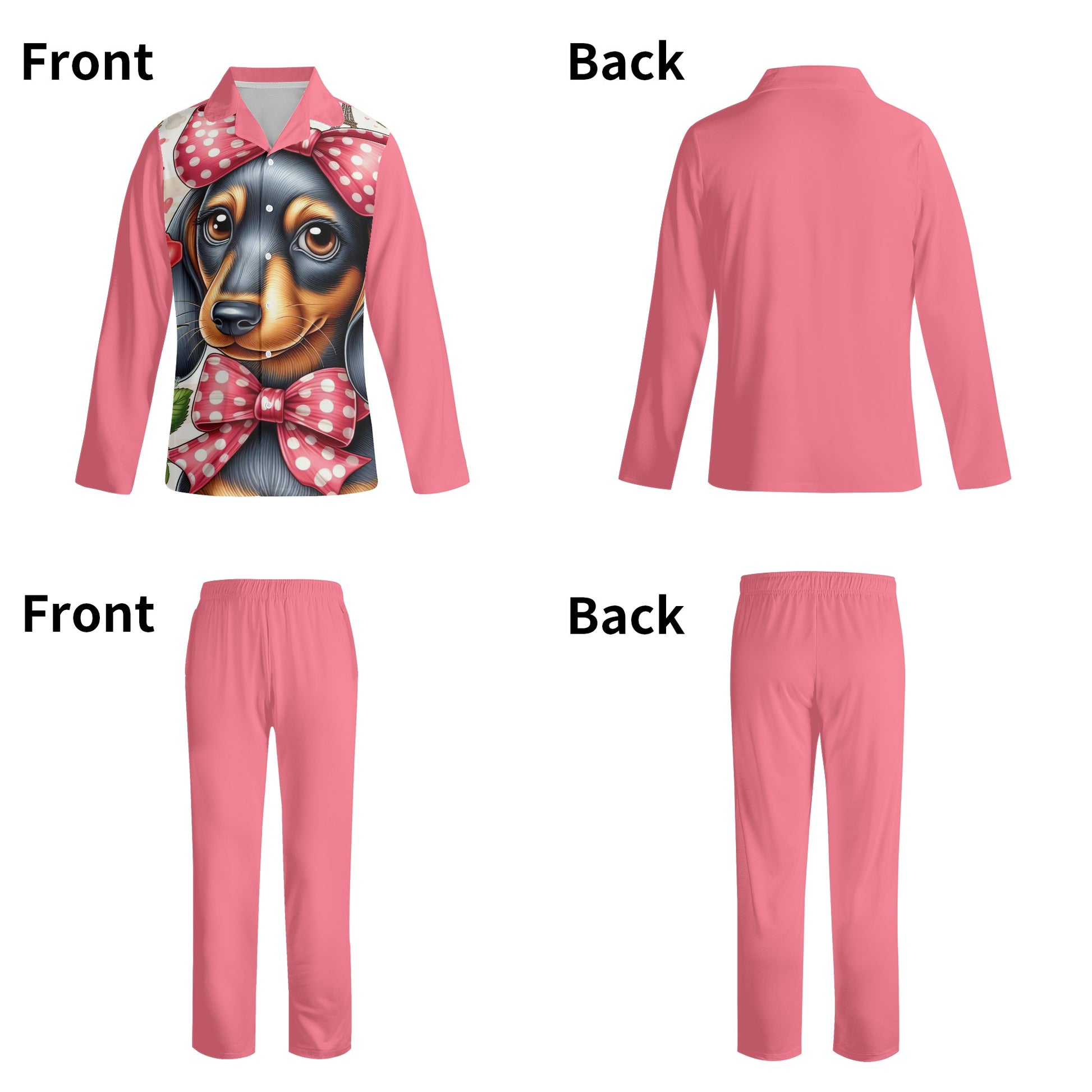 - ¿Amas a los perros salchicha tanto como a nosotros? Si es así, te encantará este conjunto de pijama acogedor y elegante que presenta un lindo y colorido patrón de perro salchicha. Ya sea que estés acurrucándote con tu amigo peludo o relajándote solo, este conjunto de pijama te mantendrá abrigado y cómodo durante toda la noche.
