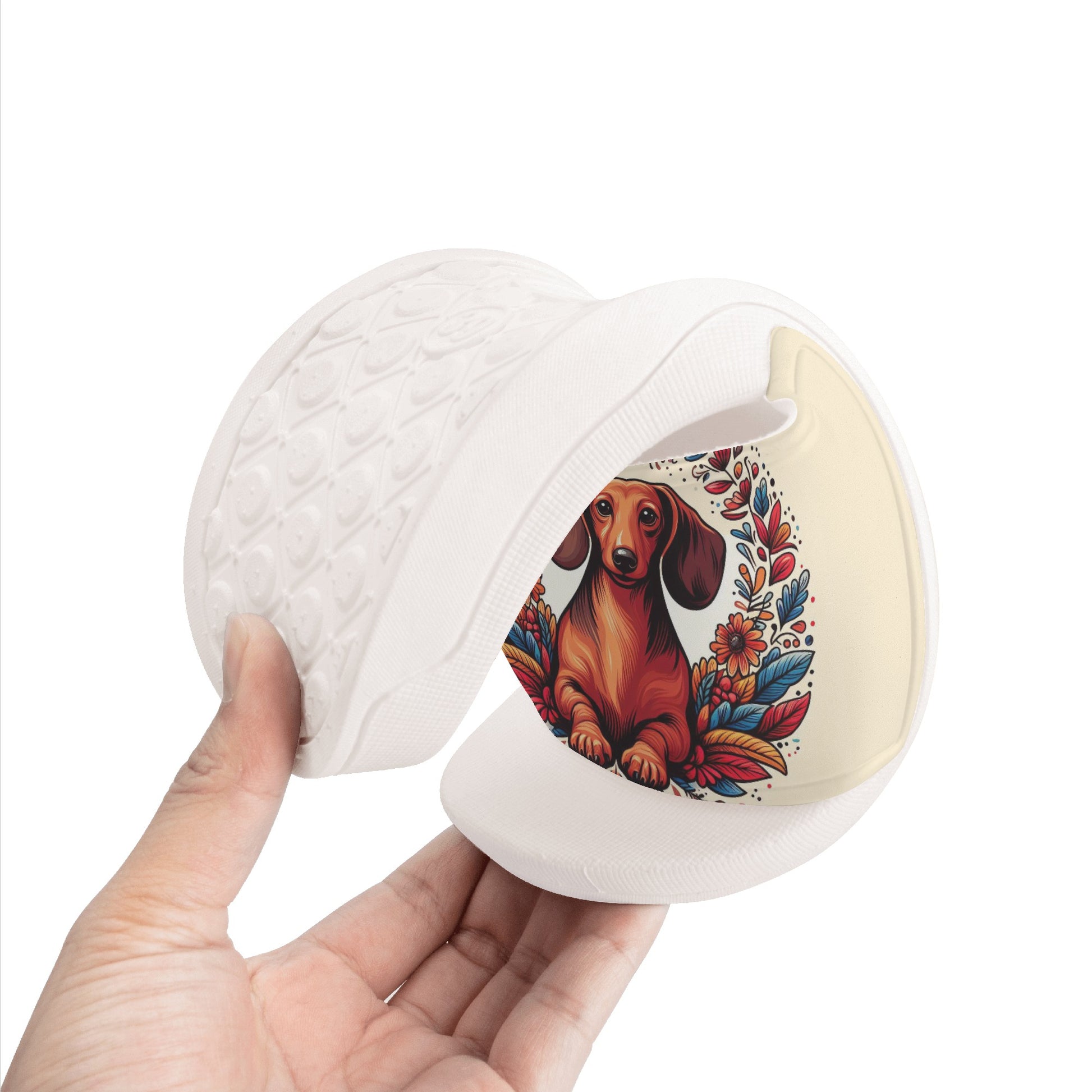 Estas sandalias cuentan con una parte superior de tela de goma que se puede personalizar con el diseño de tu perro salchicha favorito. Ya sea que prefieras perros salchicha lisos, de pelo duro o de pelo largo, o una variedad de colores y patrones, puedes crear tu propio par de sandalias únicas que reflejen tu estilo y personalidad.