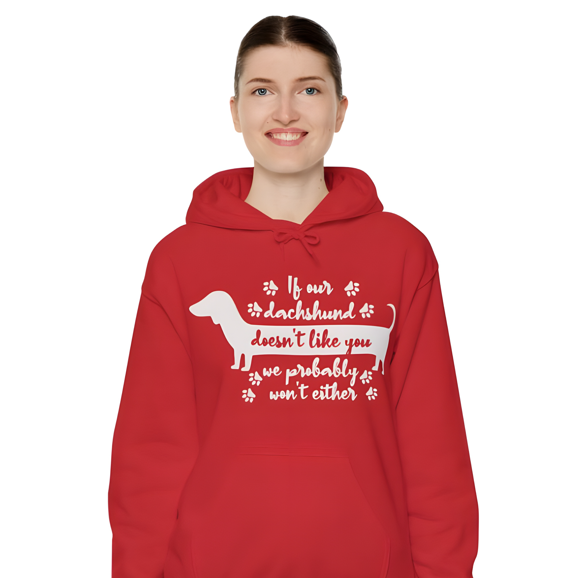 Mantente abrigado, cómodo y elegante mientras celebras tu pasión por los perros salchicha. ¡Pide hoy tu sudadera con capucha Dachshund Lovers y disfruta de la combinación perfecta de comodidad y estilo de inspiración canina! 🐶🧥💕"