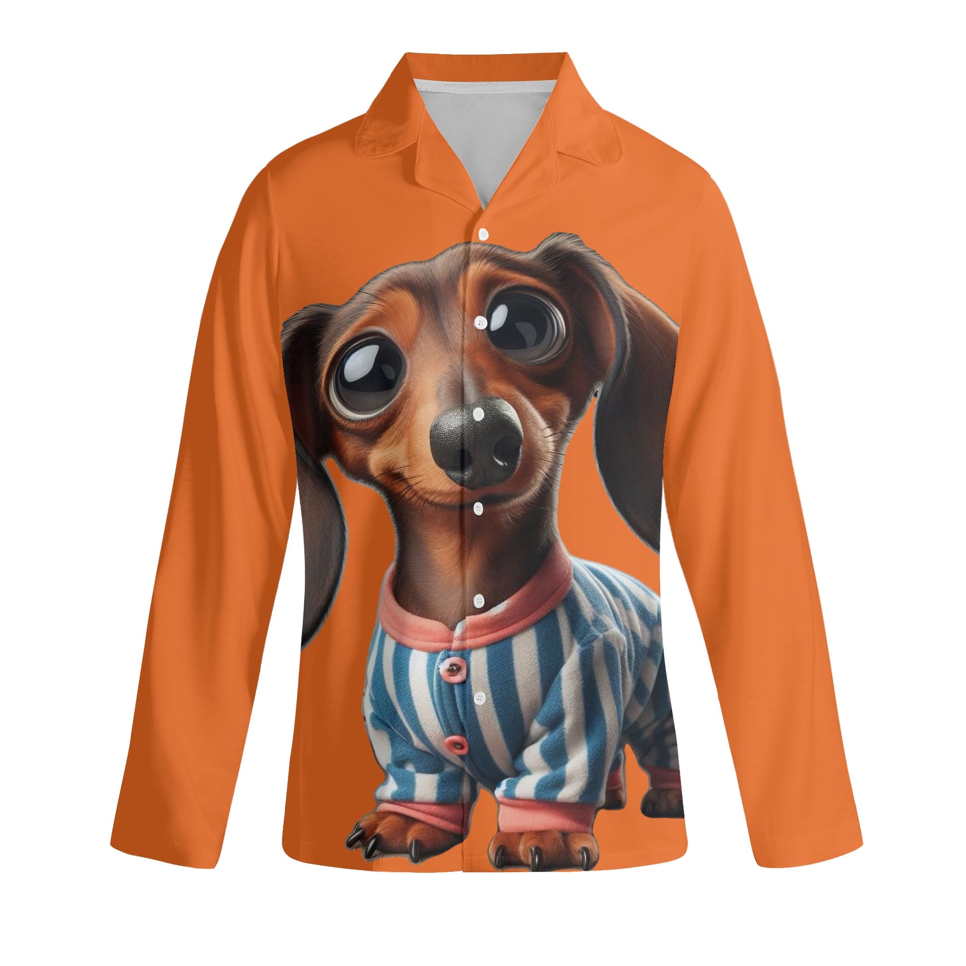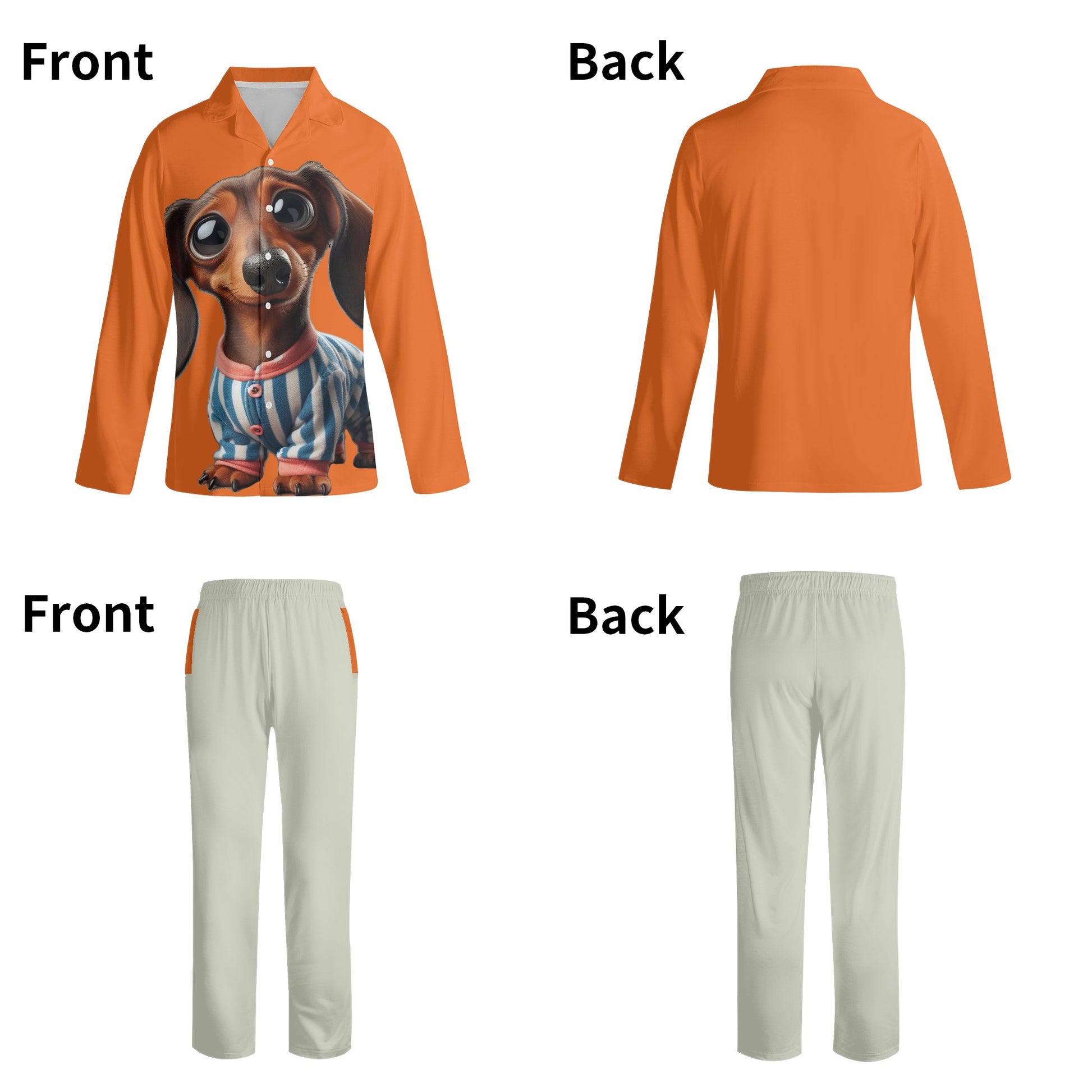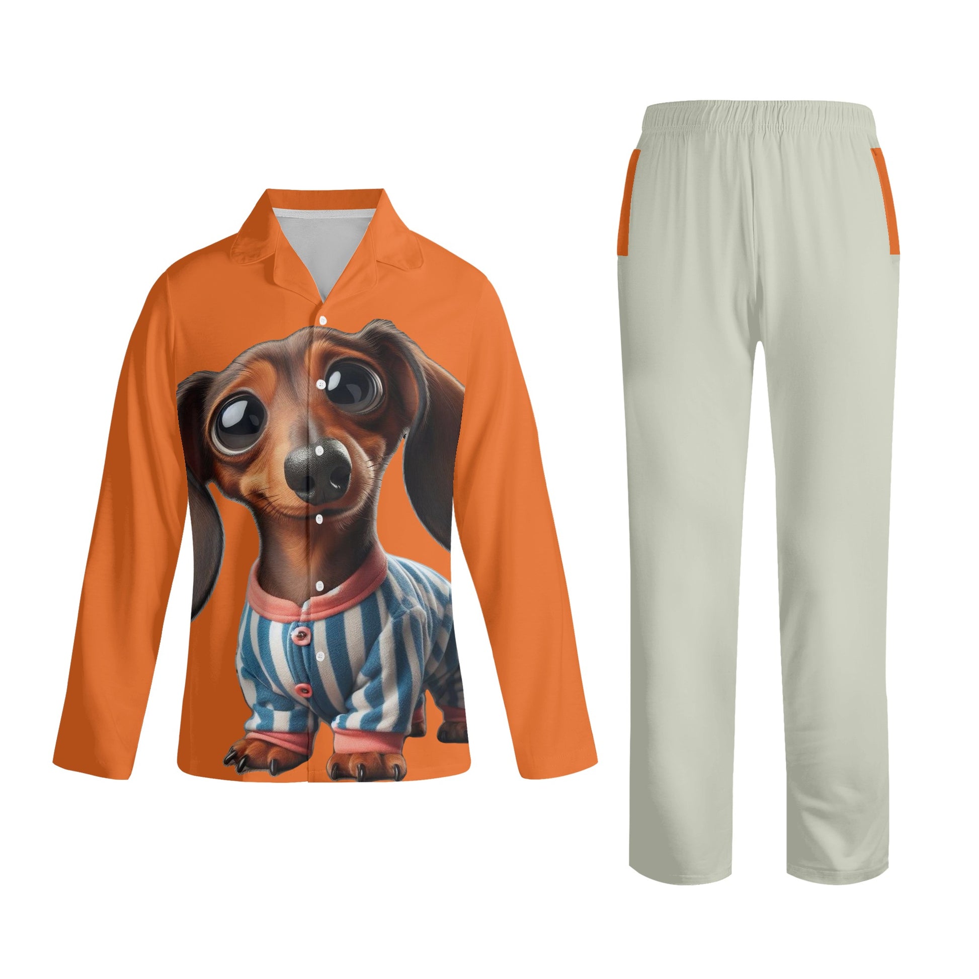 - ¿Amas a los perros salchicha tanto como a nosotros? Si es así, te encantará este conjunto de pijama acogedor y elegante que presenta un lindo y colorido patrón de perro salchicha. Ya sea que estés acurrucándote con tu amigo peludo o relajándote solo, este conjunto de pijama te mantendrá abrigado y cómodo durante toda la noche.