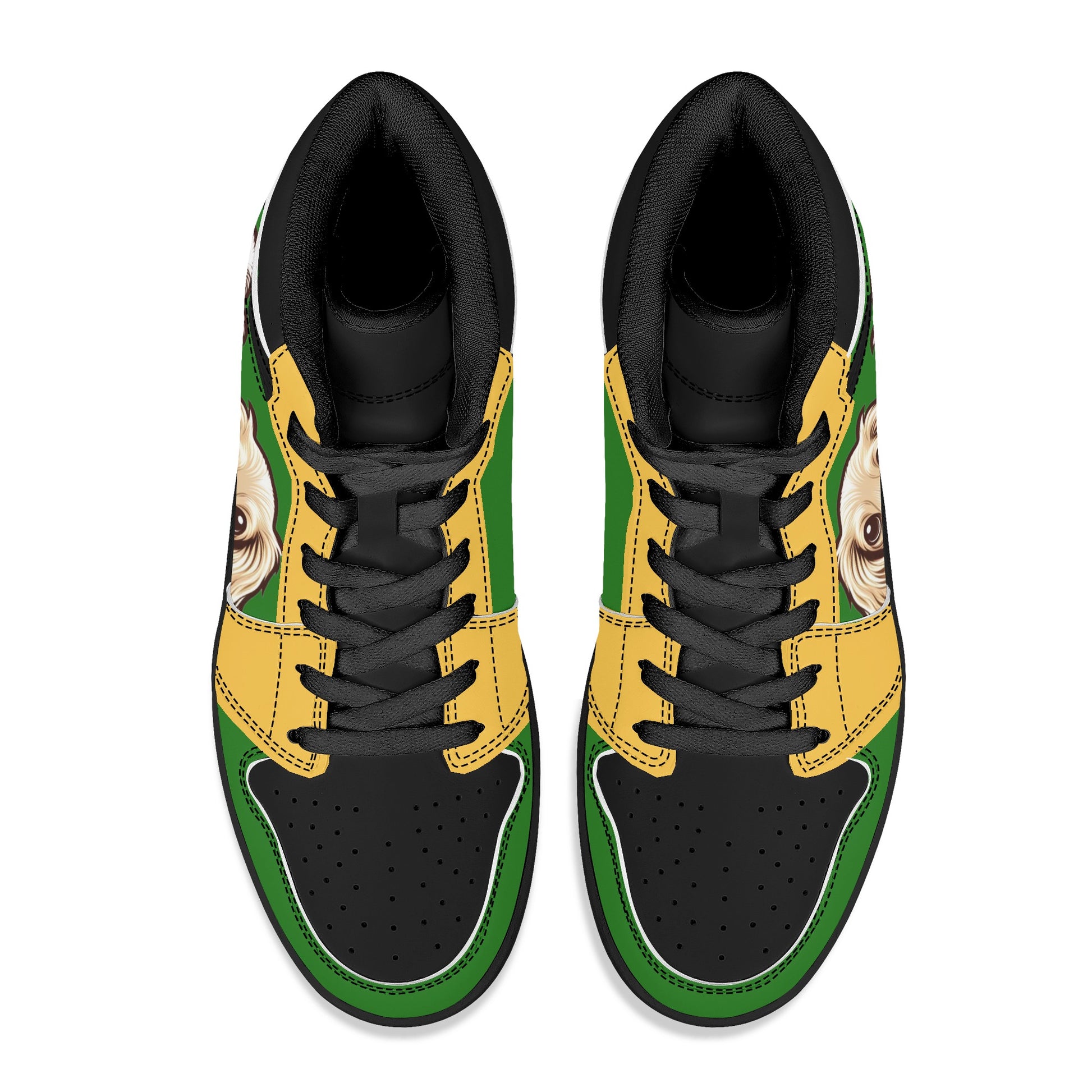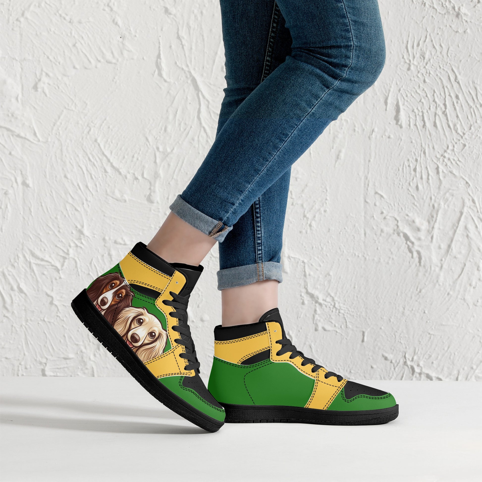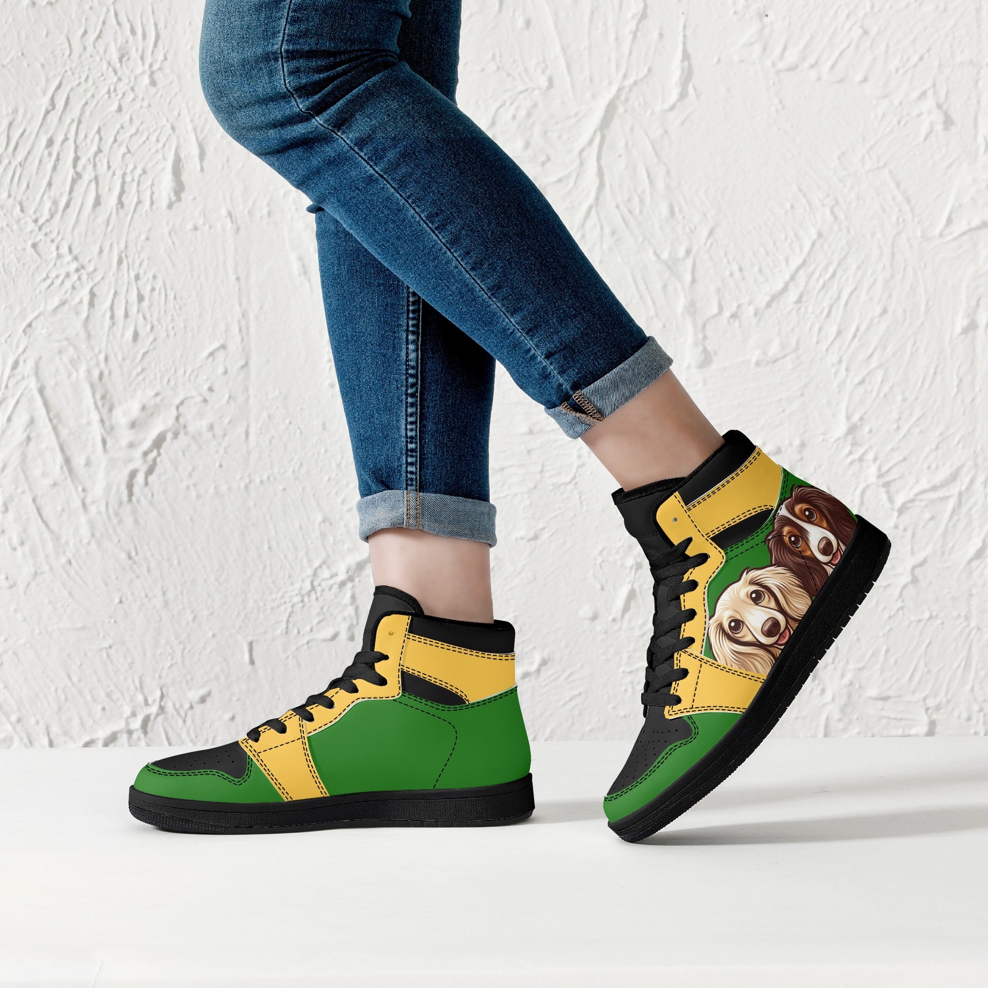 Si es así, te encantarán estos zapatos personalizados con estampado integral que presentan lindas cabezas de perro salchicha en varios colores y patrones.