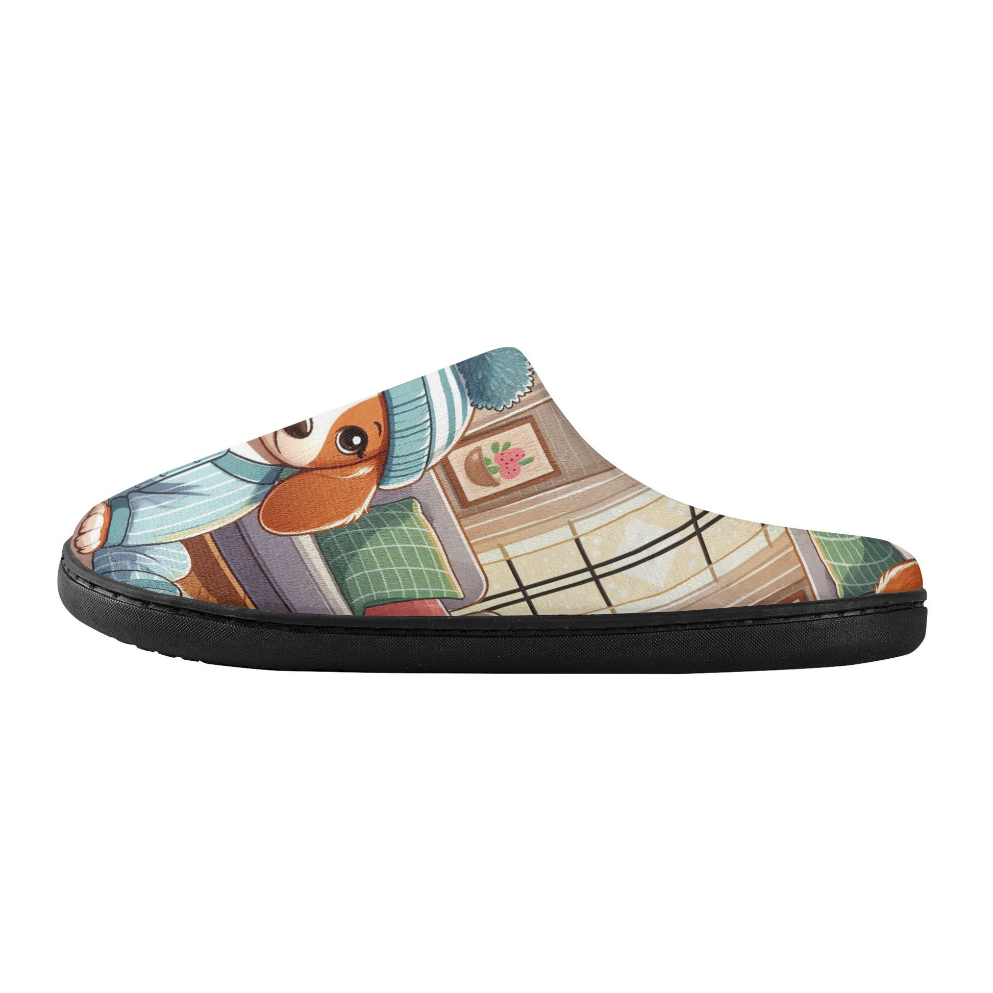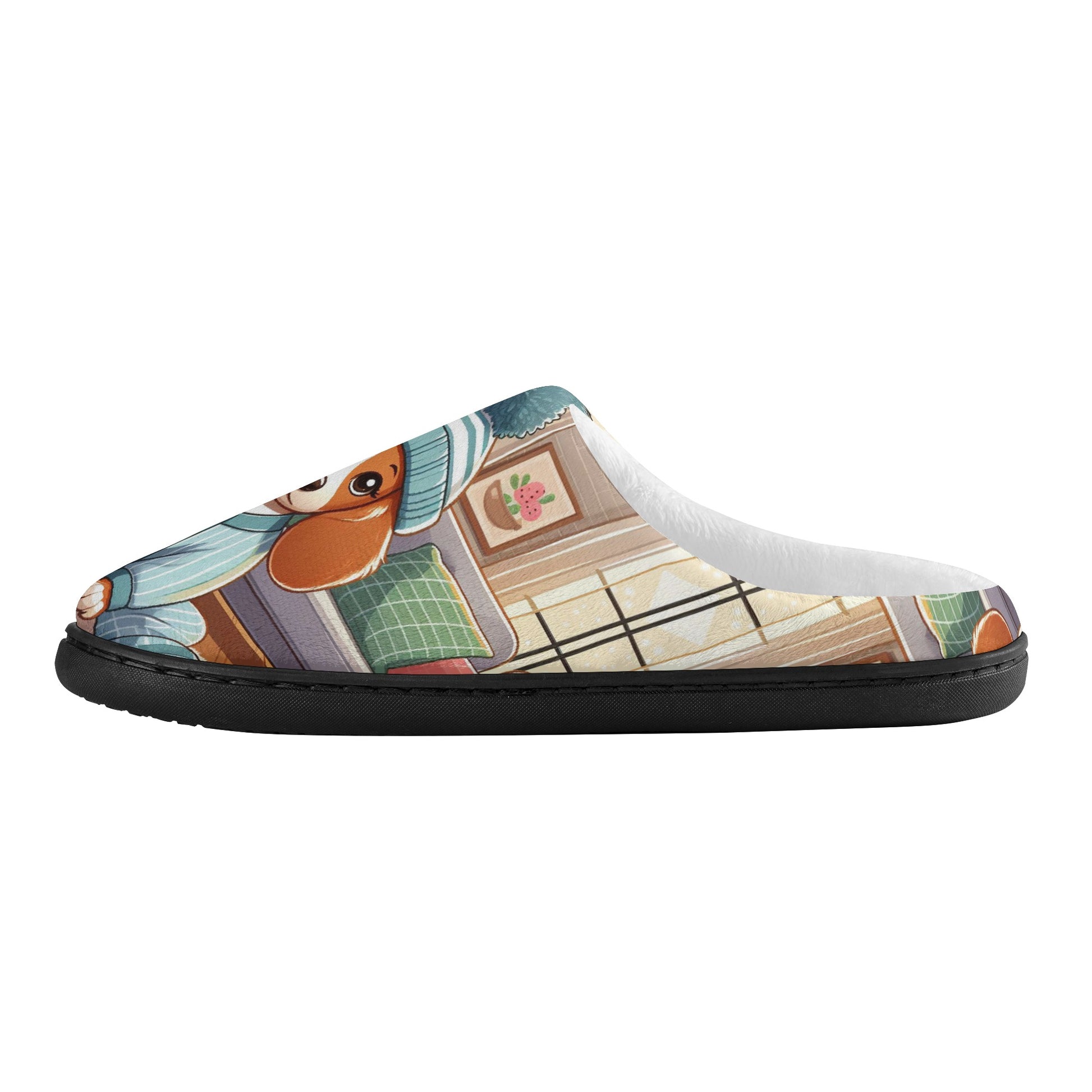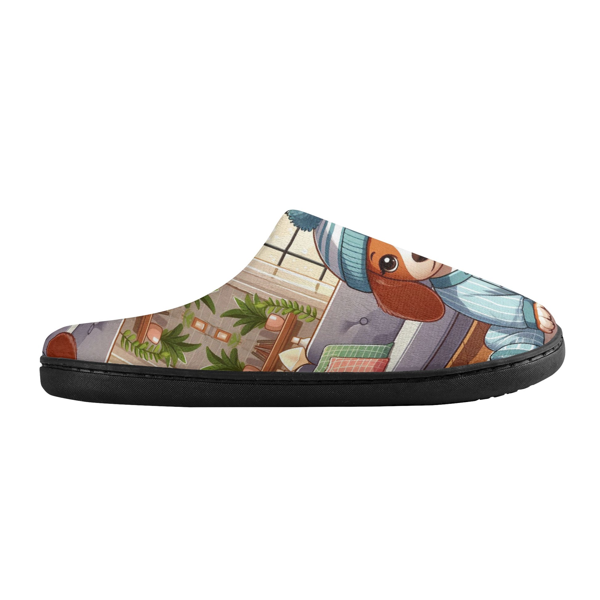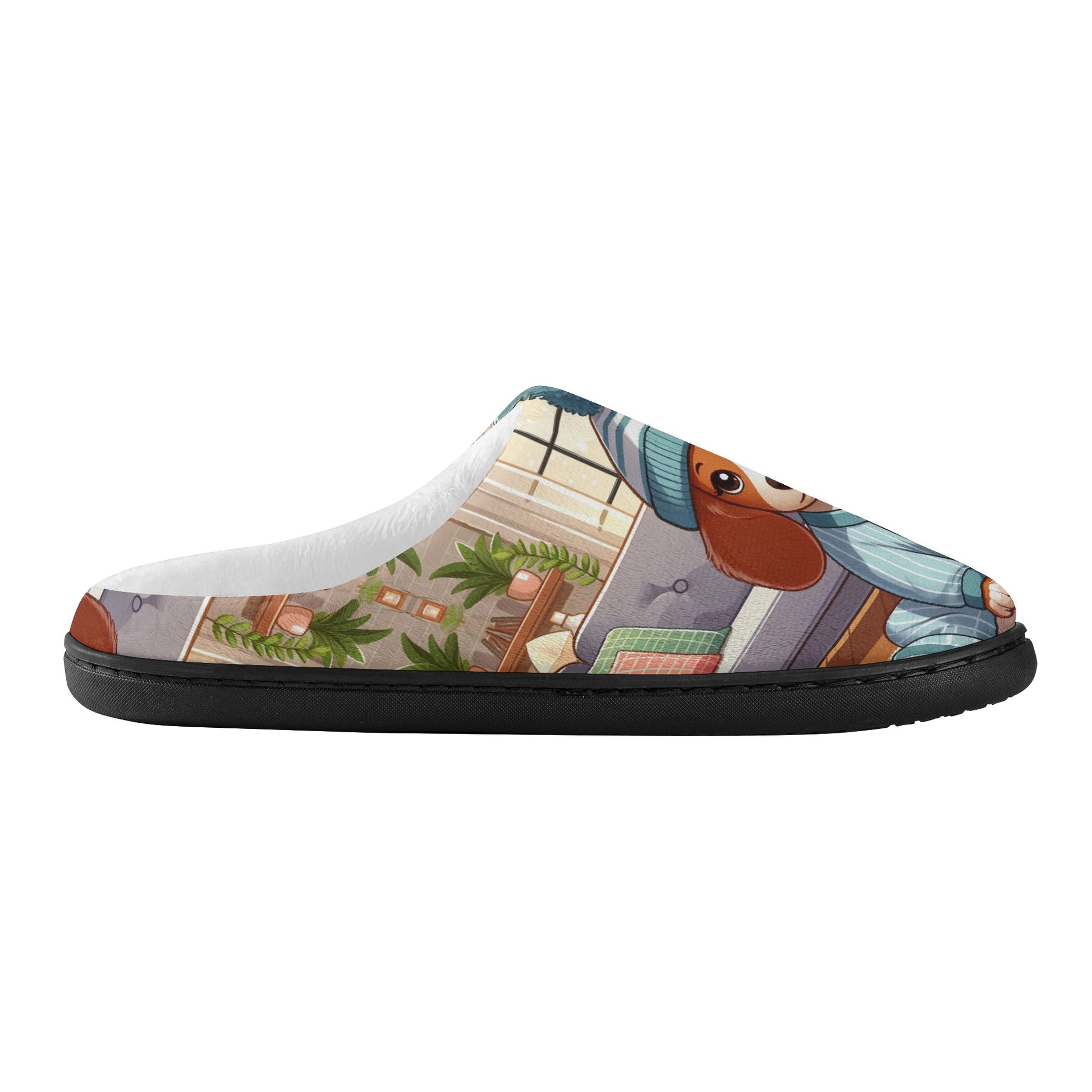 Estas pantuflas están hechas a medida con un estampado completo de lindos perros salchicha en varias poses y colores. Tienen una construcción estilo puntera redondeada y cerrada y tacón plano que se adapta cómodamente a tus pies. Están confeccionados con un tejido de felpa 100% poliéster que mantiene tus pies calientes y cómodos en climas fríos. Además cuentan con un material de goma de alta calidad en la suela que proporciona seguridad antideslizante y durabilidad.