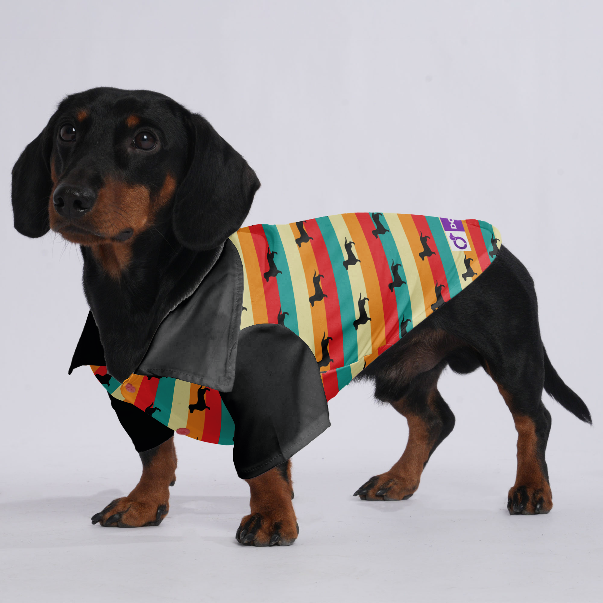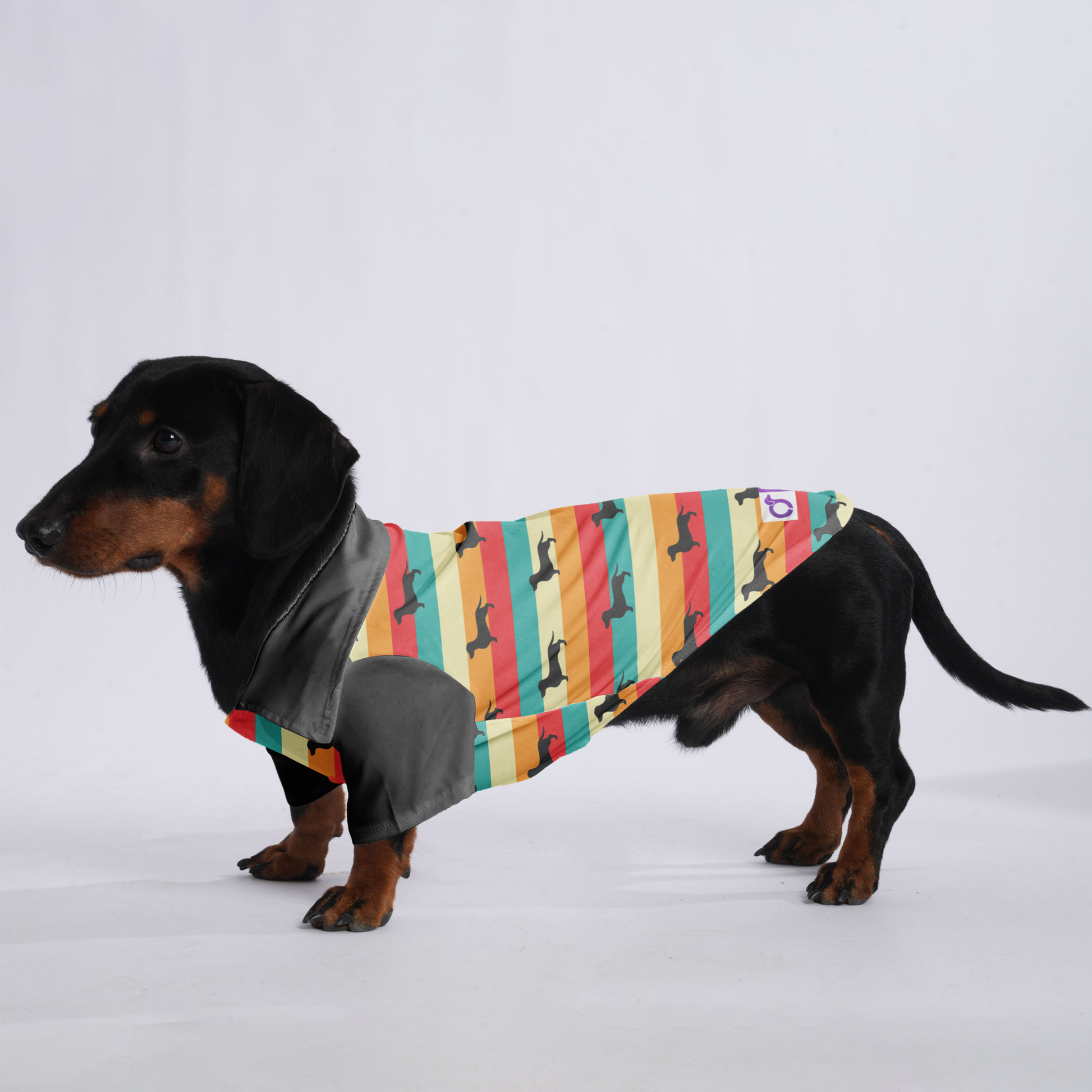 Give your dachshund a taste of the tropics with this stylish and comfortable Hawaiian shirt! Made from breathable, four-way stretch fabric (95% polyester, 5% spandex), it’s perfect for warm-weather adventures. With vibrant colors, your pup will be the star of any outing.