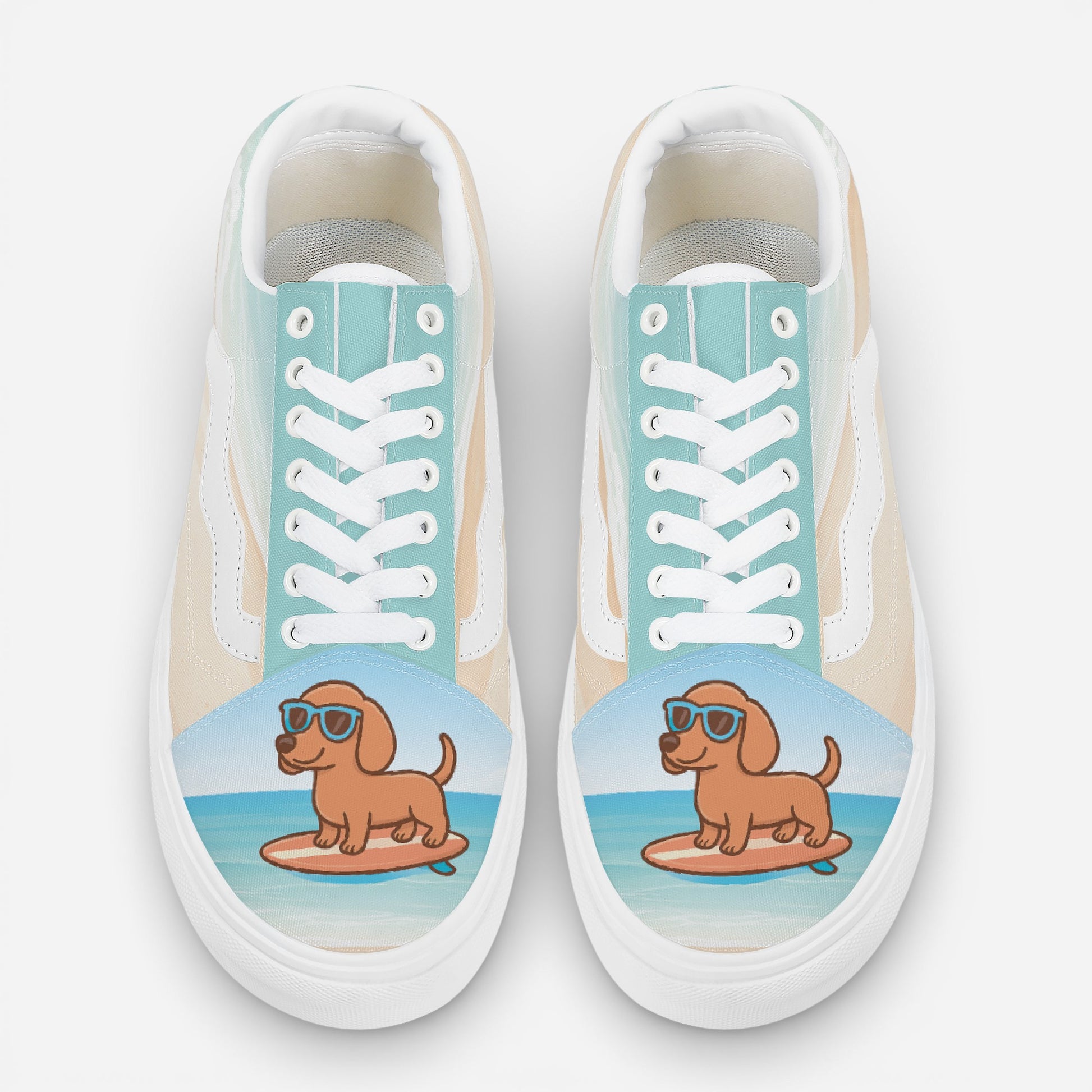 Walk in style and comfort with these Trendy Low-Top Canvas Sneakers — lightweight, durable, and perfect for every Dachshund fan! ❤️🐾