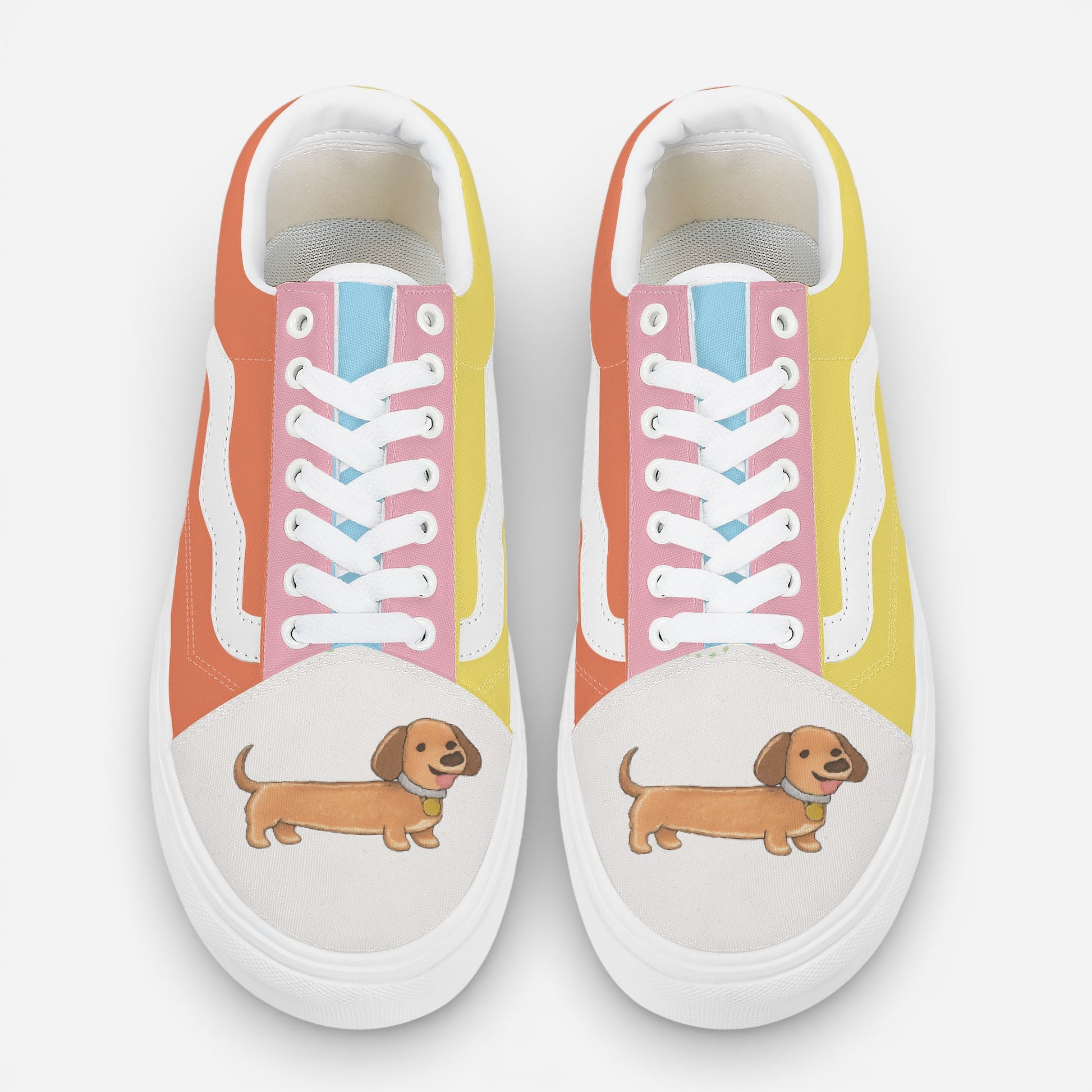 Walk in style and comfort with these Trendy Low-Top Canvas Sneakers — lightweight, durable, and perfect for every Dachshund fan! ❤️🐾