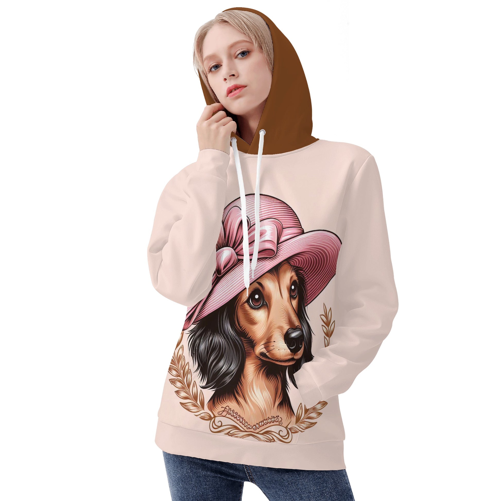 Si te encantan los perros salchicha, te encantará esta acogedora y elegante sudadera con capucha para mujer. Esta sudadera con capucha está hecha de un material de poliéster que es suave, cómodo y cálido para el uso diario. Está cortado y cosido pieza a pieza para adaptarse perfectamente a tu cuerpo. Tiene una capucha con cordones y un bolsillo canguro para mayor calidez y comodidad.