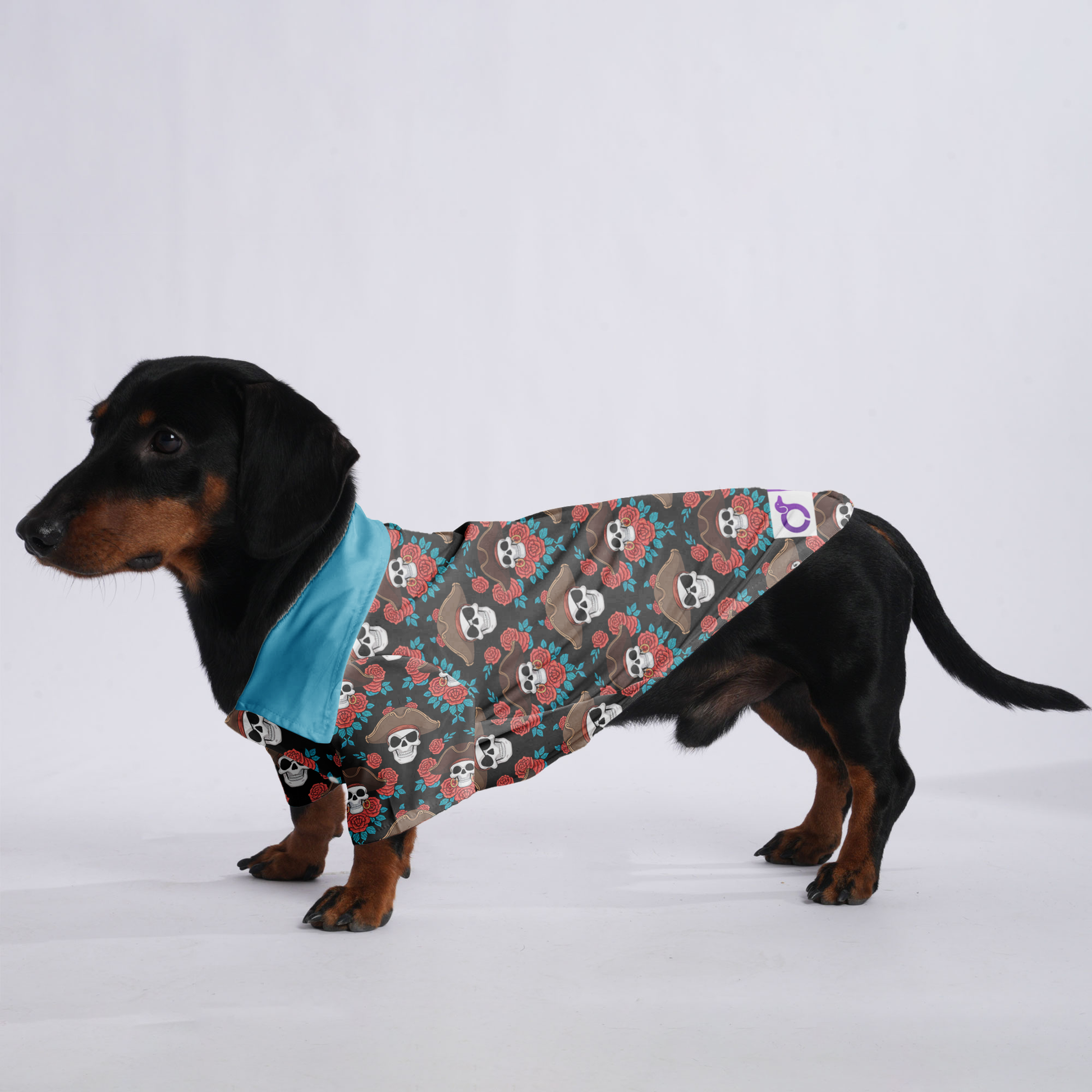 Give your dachshund a taste of the tropics with this stylish and comfortable Hawaiian shirt! Made from breathable, four-way stretch fabric (95% polyester, 5% spandex), it’s perfect for warm-weather adventures. With vibrant colors, your pup will be the star of any outing.