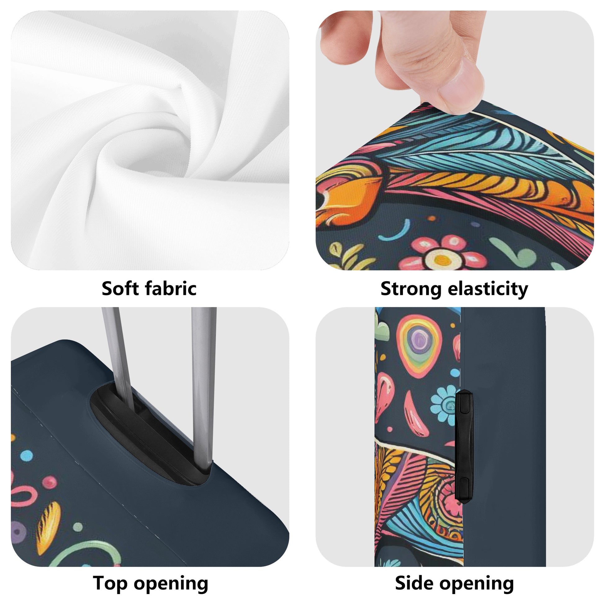- Esta funda está hecha de poliéster y fibra de lona que es resistente, lavable y elástica. Se adapta perfectamente a tu maleta y la protege de la suciedad y los arañazos.